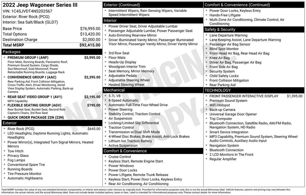 With its unparalleled combination of style, technology, and capability, this 2022 Jeep Wagoneer Series III is the perfect choice for those seeking a premium, family-friendly SUV. Experience the difference for yourself â" schedule a test drive today and discover the exceptional value this Wagoneer has to offer.