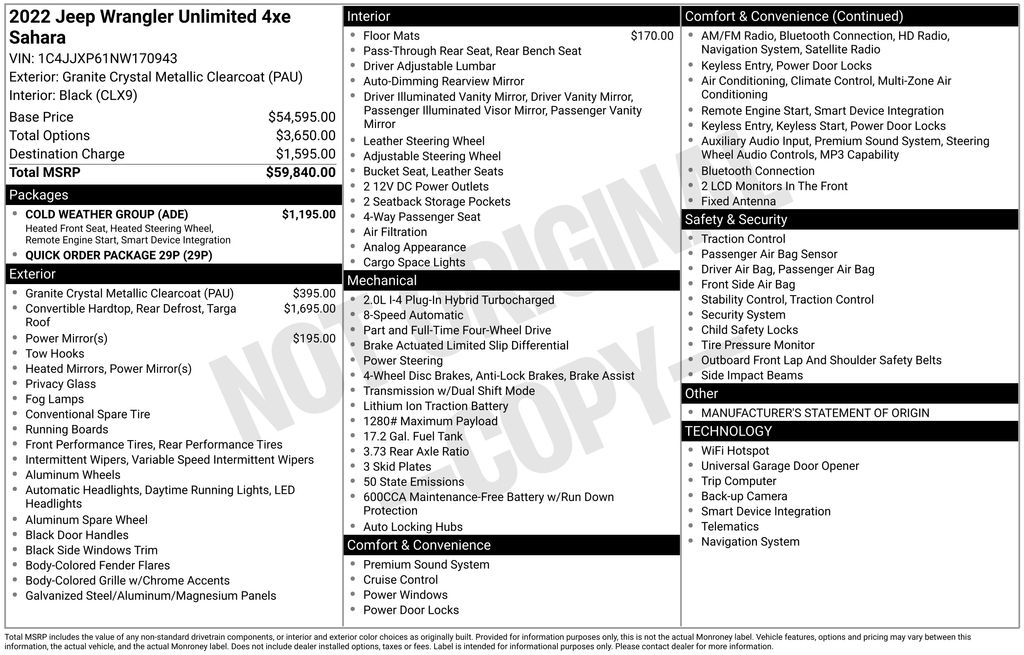 Highlights of this Wrangler Unlimited Sahara 4xe include: