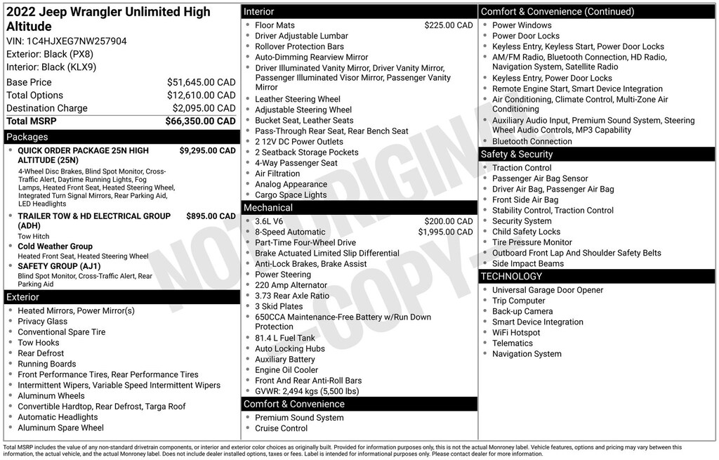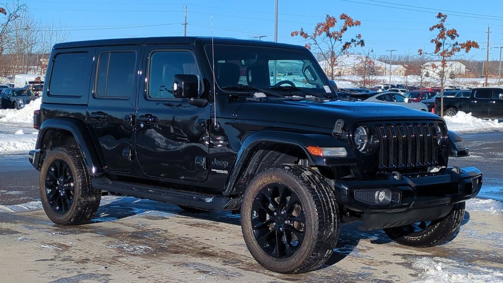 Clean CARFAX. Certified. 2022 Jeep Wrangler Unlimited Sahara High Altitude Is nicely equipped with Cold Weather Group (Heated Front Seats and Heated Steering Wheel), High Altitude Package, Ford Blue Advantage: Blue Certified Certified, ABS brakes, Alloy wheels, Compass, Electronic Stability Control, Front dual zone A/C, Heated door mirrors, Illuminated entry, Low tire pressure warning, Navigation System, ParkView Rear Back-Up Camera, Remote keyless entry, Traction control, 110 MPH Vehicle Max Speed Calibration, 3.45 Rear Axle Ratio, 4-Wheel Disc Brakes, 9 Speakers, Air Conditioning, AM/FM radio: SiriusXM, Apple CarPlay/Android Auto, Auto-dimming Rear-View mirror, Automatic temperature control, Aux Battery, Brake assist, Cloth Low-Back Bucket Seats, Delay-off headlights, Driver door bin, Driver vanity mirror, Dual front impact airbags, Dual front side impact airbags, Emergency communication system: SiriusXM Guardian, Engine Oil Cooler, Front anti-roll bar, Front Bucket Seats, Front Center Armrest w/Storage, Front fog lights, Front reading lights, Fully automatic headlights, Garage door transmitter, Heavy Duty Suspension w/Gas Shocks, Integrated roll-over protection, Leather steering wheel, Non-Lock Fuel Cap w/o Discriminator, Occupant sensing airbag, Outside temperature display, Panic alarm, Passenger door bin, Passenger vanity mirror, Power door mirrors, Power steering, Power windows, Radio data system, Radio: Uconnect 4C Nav w/8.4" Display, Rear anti-roll bar, Rear reading lights, Security system, Speed control, Split folding rear seat, Steering wheel mounted audio controls, Stop-Start Dual Battery System, Tachometer, Telescoping steering wheel, Tilt steering wheel, Trip computer, Variably intermittent wipers, Voltmeter, and Wheels: 18" x 7.5" Polished w/Gray Spokes.