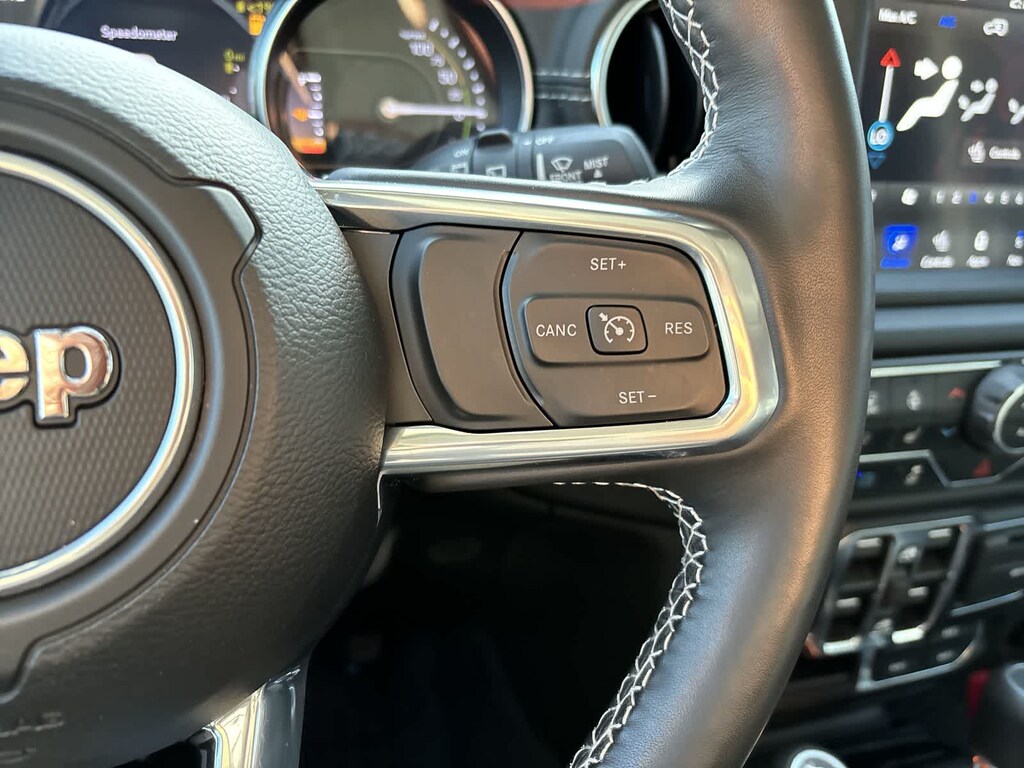 BODY COLOR 3-PIECE HARD TOP Freedom Panel Storage Bag, Rear Window Defroster, Rear Window Wiper/Washer, COLD WEATHER GROUP Heated Steering Wheel, Remote Start System, Heated Front Seats, TRAILER TOW & AUX SWITCH GROUP Class II Receiver Hitch, 700 Amp Maintenance Free Battery, 7 & 4 Pin Wiring Harness, Auxiliary Switches, TRANSMISSION: 8-SPEED AUTO 8P75PH PHEV (STD), ENGINE: 2.0L I4 DOHC DI TURBO PHEV (STD).