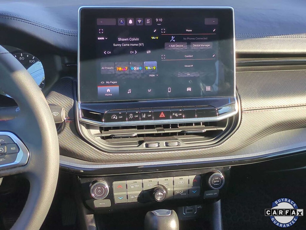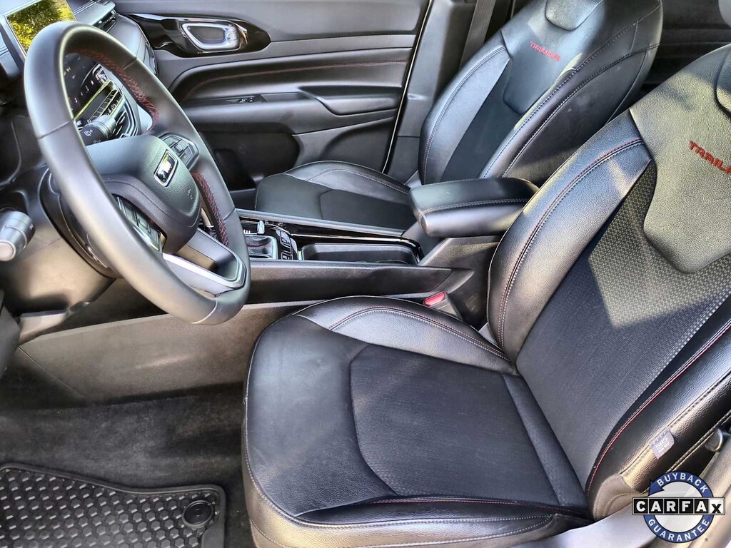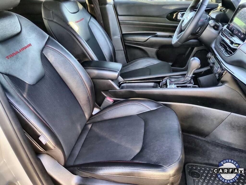 Theres no need to sacrifice comfort for capability in our Trailhawk cabin. It treats you right with leather/premium-cloth front seats, red accent stitching, a premium-wrapped steering wheel, dual-zone automatic climate control, pushbutton ignition, keyless access, and confident connectivity. Staying in touch is a breeze with the 7-inch driver display, a 10.1-inch touchscreen, WiFi compatibility, Android Autoî, Apple CarPlayî, Bluetoothî, voice activation, and a six-speaker sound system.