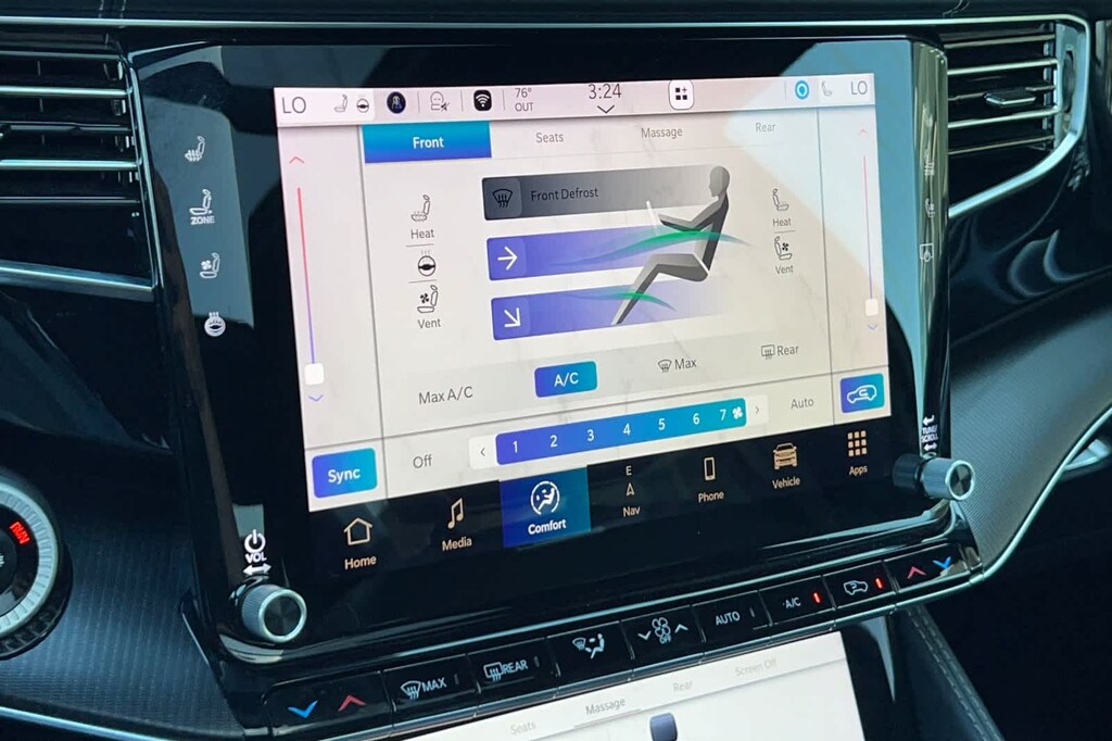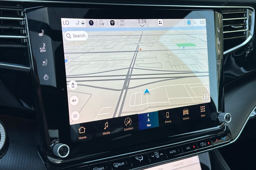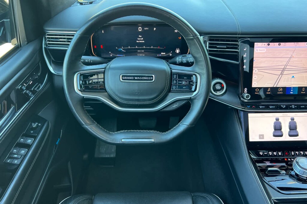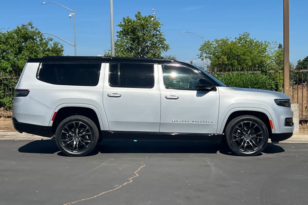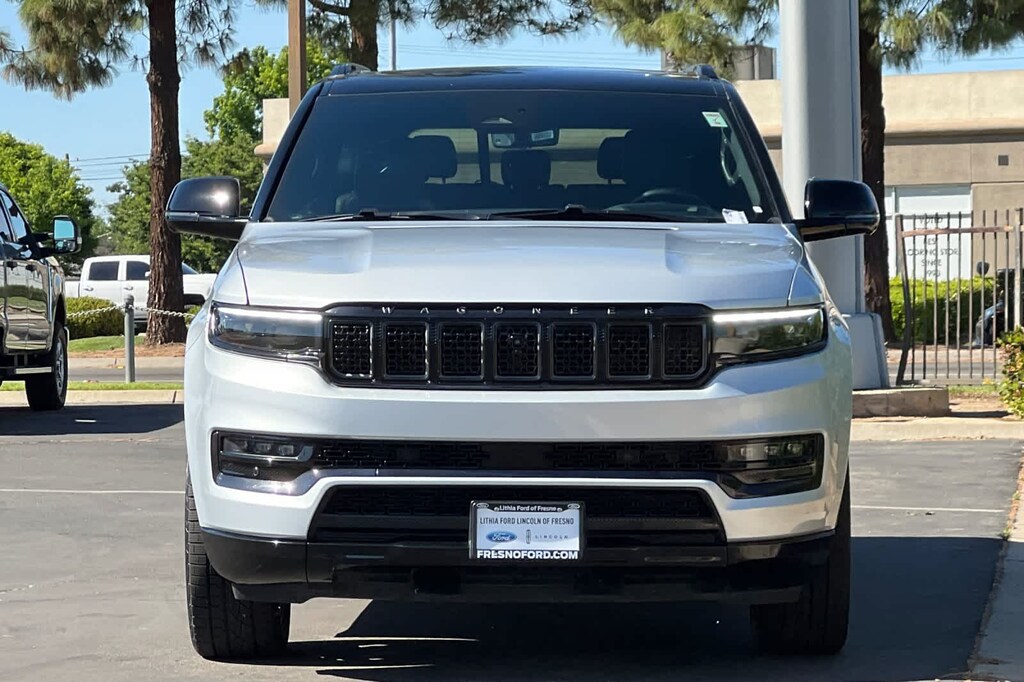 Lithia Ford and Lincoln of Fresno is pleased to offer this Silver Zynith 2024 Jeep Grand Wagoneer L Series II for purchase, this vehicle is well equipped with many features including: Flexible Seating Group (2nd Row Dual Charge-Only USB Ports, 40/20/40 2nd Row Bench Power Tip/Slide, and 8-Passenger Seating), Obsidian Appearance Package, Quick Order Package 28T Obsidian (23 Speaker McIntosh Reference Audio System, Adjustable Roof Rail Crossbars, Black Interior Accents, Black Roof, Front Console Cooler, Front Passenger Interactive Display, Gloss Black Upper & Lower DLO Molding, Piano Black Exterior Accents, Rearview Autodim Digital Display Mirror, Ventilated Rear Seats, and Wheels: 22 x 9.0 Tinted Polished w/Black Insert), Two Tone Paint Group, Jeep Certified, 19 Speakers, 3.92 Rear Axle Ratio, 3rd row seats: bench, 4-Wheel Disc Brakes, ABS brakes, Adjustable pedals, Air Conditioning, Alloy wheels, AM/FM radio: SiriusXM with 360L, Anti-whiplash front head restraints, Apple CarPlay/Android Auto, Audio memory, Auto High-beam Headlights, Auto-dimming door mirrors, Auto-dimming Rear-View mirror, Auto-leveling suspension, Automatic temperature control, Brake assist, Bumpers: body-color, Compass, Delay-off headlights, Driver door bin, Driver vanity mirror, Drivers Seat Mounted Armrest, Dual front impact airbags, Dual front side impact airbags, Electronic Stability Control, Emergency communication system, Four wheel independent suspension, Front anti-roll bar, Front Bucket Seats, Front Center Armrest w/Storage, Front dual zone A/C, Front fog lights, Front reading lights, Fully automatic headlights, Garage door transmitter, Genuine wood console insert, Genuine wood dashboard insert, Genuine wood door panel insert, Heads-Up Display, Heated door mirrors, Heated front seats, Heated rear seats, Heated steering wheel, Illuminated entry, Knee airbag, Leather steering wheel, Leather Trimmed Bucket Seats, Low tire pressure warning, Memory seat, Navigation System, Normal Duty Suspension, Occupant sensing airbag, Outside temperature display, Overhead airbag, Overhead console, Panic alarm, Passenger door bin, Passenger seat mounted armrest, Passenger vanity mirror, Pedal memory, Power adjustable front head restraints, Power door mirrors, Power driver seat, Power Liftgate, Power moonroof, Power passenger seat, Power steering, Power windows, Radio data system, Radio: Uconnect 5 Nav w/12.0 Display, Rain sensing wipers, Rear air conditioning, Rear anti-roll bar, Rear dual zone A/C, Rear reading lights, Rear seat center armrest, Rear window defroster, Rear window wiper, Reclining 3rd row seat, Remote keyless entry, Security system, Speed control, Speed-sensing steering, Speed-Sensitive Wipers, Split folding rear seat, Steering wheel memory, Steering wheel mounted audio controls, Tachometer, Telescoping steering wheel, Tilt steering wheel, Traction control, Trip computer, Turn signal indicator mirrors, Variably intermittent wipers, Ventilated front seats, and Voltmeter. 4WD 3.0L I6 8-Speed Automatic Series II