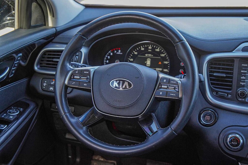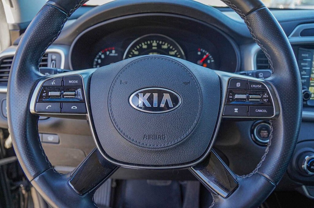 Sorento SX, Kia Certified Pre-Owned Certified, Ebony Black, 10 Speakers, 3.32 Axle Ratio, 3rd row seats: split-bench, 4-Wheel Disc Brakes, ABS brakes, Air Conditioning, Alloy wheels, AM/FM radio: SiriusXM, Apple CarPlay & Android Auto, Auto-dimming Rear-View mirror, Automatic temperature control, Brake assist, Bumpers: body-color, Carpeted Floor Mats (7-Passenger), Delay-off headlights, Driver door bin, Driver vanity mirror, Dual front impact airbags, Dual front side impact airbags, Electronic Stability Control, Emergency communication system: UVO3, Exterior Parking Camera Rear, Four wheel independent suspension, Front anti-roll bar, Front Bucket Seats, Front Center Armrest, Front dual zone A/C, Front fog lights, Front reading lights, Fully automatic headlights, Garage door transmitter: HomeLink, harman/kardonî Speakers, Heated door mirrors, Heated Front Bucket Seats, Heated Front Seats, Illuminated entry, Interior Lighting Kit, Leather Seat Trim, Leather steering wheel, Low tire pressure warning, Memory seat, Navigation System, Occupant sensing airbag, Outside temperature display, Overhead airbag, Overhead console, Panic alarm, Passenger door bin, Passenger vanity mirror, Power door mirrors, Power driver seat, Power Liftgate, Power moonroof, Power Passenger Seat, Power steering, Power windows, Puddle Lights, Radio data system, Radio: UVO eServices w/Premium Navigation, Rear air conditioning, Rear anti-roll bar, Rear reading lights, Rear seat center armrest, Rear window defroster, Rear window wiper, Remote keyless entry, Remote Start, Roof rack: rails only, Security system, Speed control, Speed-sensing steering, Split Folding Fear Seat, Spoiler, Steering wheel mounted audio controls, Tachometer, Telescoping steering wheel, Tilt steering wheel, Traction control, Trip computer, Turn signal indicator mirrors, Variably intermittent wipers, Wheels: 19 x 7.5 Alloy, Sorento SX, Ebony Black.
