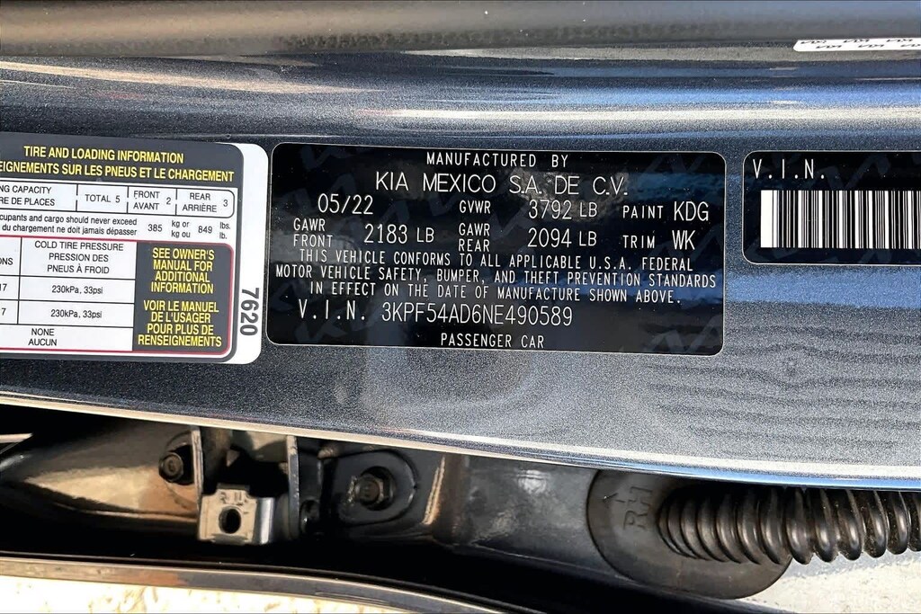 ** KIA CERTIFIED PRE OWNED, ** APPLE CARPLAY / ANDROID AUTO, ** ALLOY WHEELS, ** BACK UP CAMERA, ** BLIND SPOT ALERT, ** BLUETOOTH, HANDS-FREE, ** CROSS TRAFFIC ALERT, ** LANE DEPARTURE WARNING, ** STEERING WHEEL CONTROLS, AM/FM radio: SiriusXM, Bumpers: body-color, Heated door mirrors, Illuminated entry, Navigation System, Power door mirrors, SynTex Seat Trim, Telescoping steering wheel, Tilt steering wheel, Turn signal indicator mirrors, Variably intermittent wipers.
