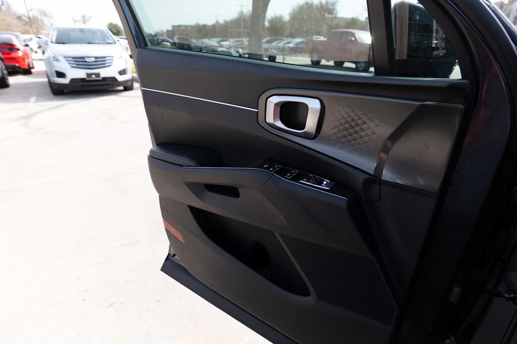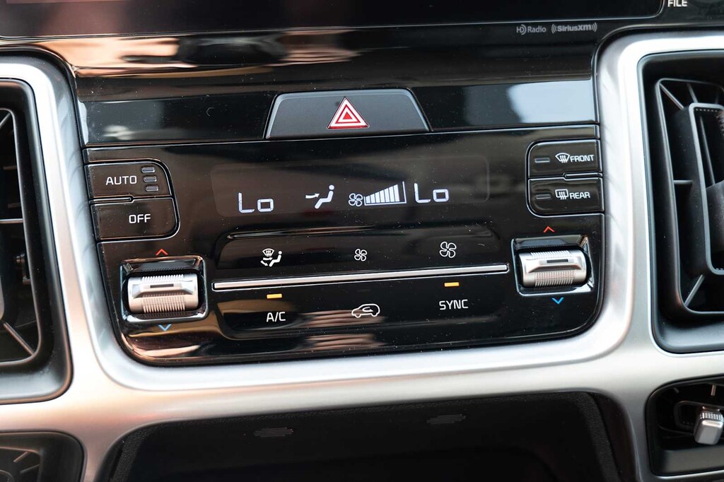 Recent Arrival! Kia Certified Pre-Owned Certified, 3.798 Axle Ratio, 3rd row seats: split-bench, 4-Wheel Disc Brakes, 6 Speakers, ABS brakes, Air Conditioning, Alloy wheels, AM/FM radio: SiriusXM, Apple CarPlay & Android Auto, Auto High-beam Headlights, Automatic temperature control, Brake assist, Bumpers: body-color, Carpeted Floor Mats, Delay-off headlights, Driver door bin, Driver vanity mirror, Dual front impact airbags, Dual front side impact airbags, Electronic Stability Control, Emergency communication system: UVO Link, Exterior Parking Camera Rear, Folding Cargo Tray, Four wheel independent suspension, Front anti-roll bar, Front Bucket Seats, Front Center Armrest, Front dual zone A/C, Front reading lights, Fully automatic headlights, Heated door mirrors, Heated Front Bucket Seats, Heated Front Seats, Illuminated entry, Knee airbag, Leather Shift Knob, Leather steering wheel, Low tire pressure warning, Navigation System, Occupant sensing airbag, Outside temperature display, Overhead airbag, Overhead console, Panic alarm, Passenger door bin, Passenger vanity mirror, Power door mirrors, Power driver seat, Power steering, Power windows, Radio data system, Radio: AM/FM Audio System, Rear air conditioning, Rear anti-roll bar, Rear reading lights, Rear seat center armrest, Rear window defroster, Rear window wiper, Remote keyless entry, Roof rack: rails only, Security system, Smart Key w/ Push Button and Remote Start, Speed control, Speed-sensing steering, Split Folding Fear Seat, Spoiler, Steering wheel mounted audio controls, SynTex Artificial Leather Seat Trim, Tachometer, Telescoping steering wheel, Tilt steering wheel, Traction control, Trip computer, Turn signal indicator mirrors, Variably intermittent wipers, Wheel Locks, Wheels: 7.5J x 18 Machine-Finished Alloy.