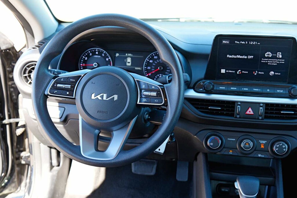 Kia Certified Pre-Owned Certified, 4 Speakers, 4-Wheel Disc Brakes, ABS brakes, Air Conditioning, AM/FM radio, Apple CarPlay & Android Auto, Auto High-beam Headlights, Brake assist, Bumpers: body-color, Cloth Seat Trim, Delay-off headlights, Driver door bin, Driver vanity mirror, Dual front impact airbags, Dual front side impact airbags, Electronic Stability Control, Exterior Parking Camera Rear, Front anti-roll bar, Front Bucket Seats, Front Center Armrest, Front reading lights, Front wheel independent suspension, Fully automatic headlights, Illuminated entry, Low tire pressure warning, Occupant sensing airbag, Outside temperature display, Overhead airbag, Overhead console, Panic alarm, Passenger door bin, Passenger vanity mirror, Power door mirrors, Power steering, Power windows, Radio data system, Radio: 8 Display Audio, Rear window defroster, Remote keyless entry, Security system, Speed control, Steering wheel mounted audio controls, Tachometer, Telescoping steering wheel, Tilt steering wheel, Traction control, Trip computer, Variably intermittent wipers.