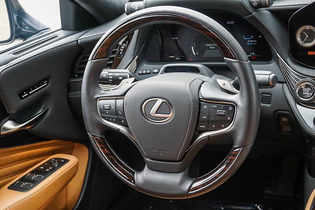 Certified. Caviar 2025 Lexus LS 500 Base CERTIFIED AWD 10-Speed Automatic 3.4L V6 Local Trade-In with service records, Just Serviced, Extremely Clean Vehicle, Tires in Great Condition, Professionally Detailed, Non-Smoker, Complimentary Maintenance for one (1) year or 15,000 miles, whichever occurs first, AWD, Palomino w/Semi Aniline Leather Seat Trim, Adaptive Variable Air Suspension, Advanced Park, Digital Rearview Mirror, Enhanced All-Speed Dynamic Radar Cruise Control, Front Cross-Traffic Alert w/Intersection Support, Heated & Ventilated Front Bucket Seats, Heated Rear Seats, Illuminated Door Sills, Interior Upgrade Package, Lane Change Assist, Lane Keeping Assist System, Leather-Wrapped Htd Steering Wheel w/Premium Wood, Lexus Safety System+ A Package, Mark Levinson Audio System, Panorama Glass Roof, Panoramic View Monitor, Power Front Seatbelt Buckles, Pre-Collision System w/Pedestrian Alert, Semi-Aniline Leather Seat Trim (LG), Semi-Aniline Leather-Trimmed Door Armrests, Traffic Jam Assist, Ultrasuede-Trimmed Headliner & Sun Visors, Upgraded Heated & Ventilated Front Bucket Seats, Wheels: 20 Split-20-Spoke Alloy w/Noise-Reduction, Wood & Semi-Aniline Leather-Trimmed Center Console.
