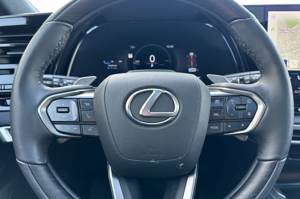 WHEELS: 21 20-SPOKE ALLOY dark gray metallic finish, Tires: 235/50R21 AS, CONVENIENCE PACKAGE electrochromic heated outside rearview mirror w/blind spot monitor, Lane Change Assist, back monitor cleaning and lane keeping assist system, RADIO: LEXUS INTERFACE W/14 TOUCHSCREEN DISPLAY 12 speakers and navigation system.
