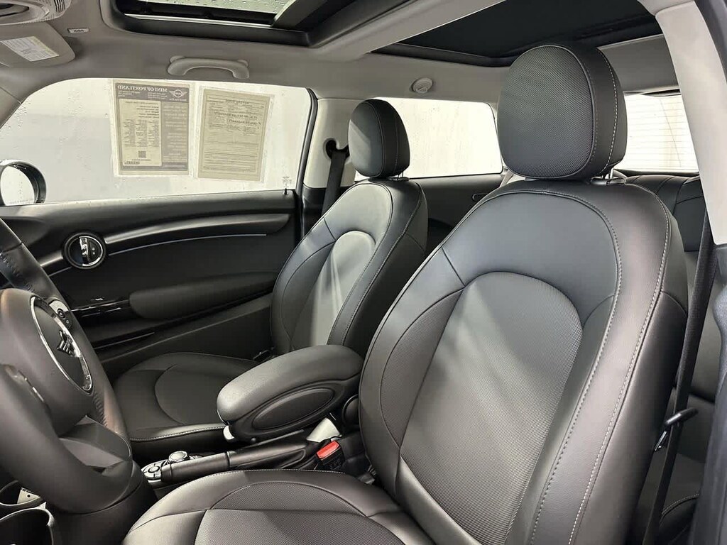 This vehicle is well equipped with many features including: 4-Wheel Disc Brakes, 6 Speakers, ABS brakes, Air Conditioning, Alloy wheels, AM/FM radio: SiriusXM, AM/FM Stereo, Apple CarPlay Compatibility, Auto High-beam Headlights, Brake assist, Bumpers: body-color, ConnectedDrive Services, Delay-off headlights, Driver vanity mirror, Dual front impact airbags, Dual front side impact airbags, Electronic Stability Control, Emergency communication system, Enhanced USB & Bluetooth, Four wheel independent suspension, Front Bucket Seats, Front fog lights, Front reading lights, Fully automatic headlights, Heated door mirrors, Illuminated entry, Knee airbag, Leather steering wheel, Low tire pressure warning, Media Display, MINI Assist eCall, MINI Connected, MINI TeleServices, Occupant sensing airbag, Outside temperature display, Overhead airbag, Overhead console, Passenger door bin, Passenger Seat Height Adjustment, Power door mirrors, Power steering, Power windows, Radio Control US, Radio data system, Rain sensing wipers, Rear anti-roll bar, Rear fog lights, Rear window defroster, Rear window wiper, Remote keyless entry, Remote Services, SensaTec Leatherette Upholstery, SiriusXM Satellite Radio w/1 Year Subscription, Speed control, Speed-sensing steering, Speed-Sensitive Wipers, Split folding rear seat, Spoiler, Sport steering wheel, Steering wheel mounted audio controls, Tachometer, Telescoping steering wheel, Tilt steering wheel, Traction control, Trip computer, Variably intermittent wipers, and Wheels: 15 x 5.5 Heli Spoke Silver.