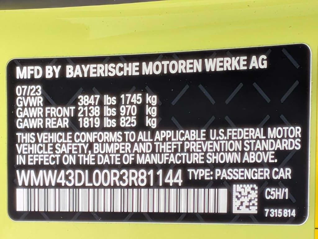 Signature Trim (Active Driving Assistant, Advanced Real-Time Traffic Information, Aluminum Interior Surface, Ambient Lighting, Apple CarPlay Compatibility, Auto-Dimming Rear-View Mirror, Body Color Mirror Caps, Comfort Access Keyless Entry, ConnectedDrive Services, Dual Zone Auto Climate Control, Dynamic Digital Instrument Cluster, Enhanced USB & Bluetooth, Front Center Armrest, Heated Front Seats, MINI Assist eCall, MINI Connected, MINI Connected XL, MINI Driving Modes, MINI Navigation, MINI TeleServices, Power-Folding Mirrors, Rear Park Distance Control, Rear-View Camera, Remote Services, and SiriusXM Satellite Radio w/1 Year Subscription), Storage Package, ABS brakes, Alloy wheels, Brake assist, Electronic Stability Control, Emergency communication system, Front dual zone A/C, Heated door mirrors, Heated front seats, Illuminated entry, Low tire pressure warning, Navigation System, Power moonroof, Remote keyless entry, Traction control, 4-Wheel Disc Brakes, 6 Speakers, Air Conditioning, AM/FM radio: SiriusXM, AM/FM Stereo, Auto High-beam Headlights, Automatic temperature control, Bumpers: body-color, Convertible roof lining, Convertible roof wind blocker, Delay-off headlights, Driver door bin, Driver vanity mirror, Dual front impact airbags, Dual front side impact airbags, Exterior Parking Camera Rear, Four wheel independent suspension, Front anti-roll bar, Front Bucket Seats, Front Center Armrest w/Storage, Front fog lights, Front reading lights, Fully automatic headlights, Glass rear window, Integrated roll-over protection, Knee airbag, Leather steering wheel, Media Display, Occupant sensing airbag, Outside temperature display, Overhead console, Passenger door bin, Passenger Seat Height Adjustment, Passenger vanity mirror, Power convertible roof, Power door mirrors, Power steering, Power windows, Radio data system, Rain sensing wipers, Rear anti-roll bar, Rear fog lights, Rear window defroster, Sensatec Leatherette Upholstery, Speed control, Speed-sensing steering, Speed-Sensitive Wipers, Split folding rear seat, Sport Seats, Sport steering wheel, Steering wheel mounted audio controls, Tachometer, Telescoping steering wheel, Tilt steering wheel, Trip computer, Variably intermittent wipers, and Wheels: 17 x 7.0 Tentacle Spoke Silver Alloy.