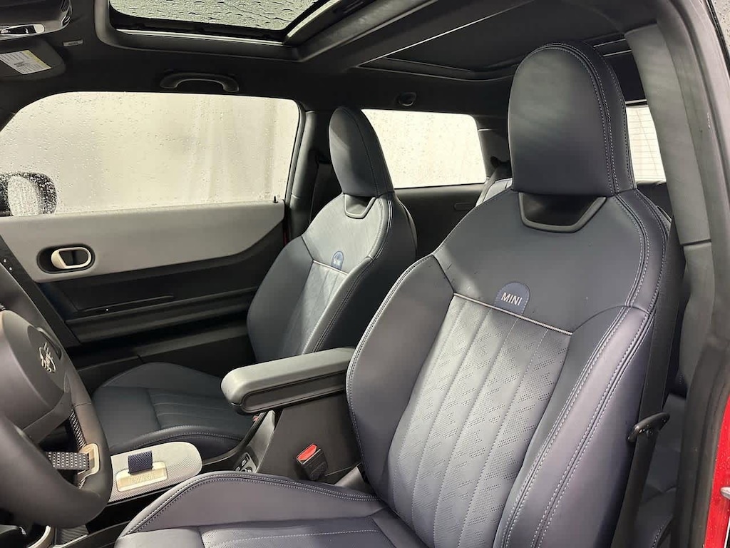 This vehicle is well equipped with many features including: Comfort Package (Auto-Dimming Interior & Exterior Mirrors, Auto-Dimming Rear-View Mirror, and Comfort Access Keyless Entry), Comfort Package Plus, Favoured Style (Body Color Roof, Favoured Trim Specific Additional Contents, Headliner in Anthracite, John Cooper Works Sport Seats, Sports Steering Wheel, Vescin Upholstery, and Wheels: 17 x 7 U-Spoke Vibrant Silver (1KF)), Iconic Trim (ACC Stop & Go + Active Driving Assistant, Active Driving Assistant, harman/kardon Surround Sound System, and Interior Camera), 4-Wheel Disc Brakes, 6 Speakers, ABS brakes, Air Conditioning, Alloy wheels, AM/FM radio: SiriusXM, AM/FM Stereo, Apple CarPlay Compatibility, Auto High-beam Headlights, Auto-dimming door mirrors, Auto-dimming Rear-View mirror, Automatic temperature control, Brake assist, Bumpers: body-color, Classic Trim Specific Additional Content, Delay-off headlights, Dual front impact airbags, Dual front side impact airbags, Electronic Stability Control, Emergency communication system: MINI Assist eCall, Exterior Parking Camera Rear, Four wheel independent suspension, Front anti-roll bar, Front Bucket Seats, Front Center Armrest w/Storage, Front dual zone A/C, Front reading lights, Fully automatic headlights, Headliner In Grey, Heads-Up Display, Heated door mirrors, Heated Front Seats, Heated front seats, Heated steering wheel, Illuminated entry, Leather steering wheel, Low tire pressure warning, MINI Assist eCall, MINI Connected, MINI Navigation, MINI TeleServices, Navigation System, Occupant sensing airbag, Panic alarm, Passenger vanity mirror, Power door mirrors, Power moonroof, Power steering, Power windows, Radio data system, Rain sensing wipers, Rear window defroster, Rear window wiper, Remote keyless entry, Security system, SiriusXM Satellite Radio w/1 Year Subscription, Speed control, Speed-sensing steering, Speed-Sensitive Wipers, Split folding rear seat, Spoiler, Sport Seats, Sport steering wheel, Steering wheel mounted audio controls, Tachometer, Telescoping steering wheel, Tilt steering wheel, Traction control, Trip computer, Variably intermittent wipers, Vescin/Cloth Upholstery, and Wheels: 17 x 7 U-Spoke Grey.
