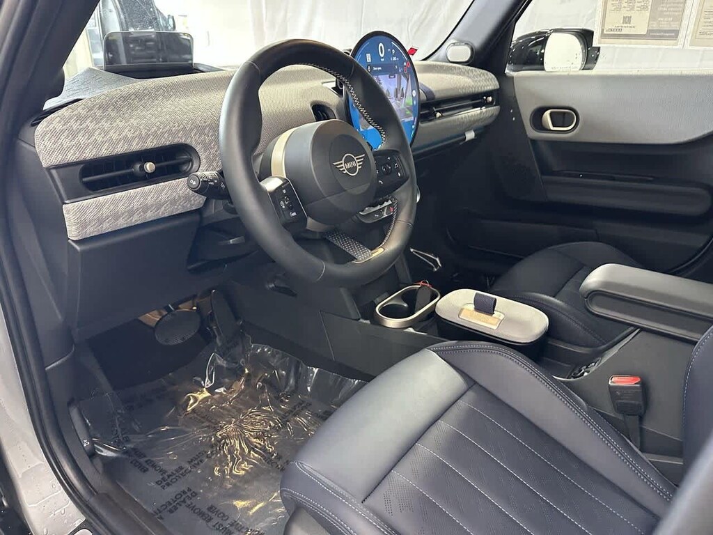 This vehicle is well equipped with many features including: Comfort Package (Auto-Dimming Interior & Exterior Mirrors, Auto-Dimming Rear-View Mirror, and Comfort Access Keyless Entry), Comfort Package Plus, Favoured Style (Body Color Roof, Favoured Trim Specific Additional Contents, Headliner in Anthracite, John Cooper Works Sport Seats, Sports Steering Wheel, Vescin Upholstery, and Wheels: 17 x 7 U-Spoke Vibrant Silver (1KF)), Iconic Trim (ACC Stop & Go + Active Driving Assistant, Active Driving Assistant, harman/kardon Surround Sound System, and Interior Camera), 4-Wheel Disc Brakes, 6 Speakers, ABS brakes, Air Conditioning, Alloy wheels, AM/FM radio: SiriusXM, AM/FM Stereo, Apple CarPlay Compatibility, Auto High-beam Headlights, Auto-dimming Rear-View mirror, Automatic temperature control, Brake assist, Bumpers: body-color, Classic Trim Specific Additional Content, Delay-off headlights, Driver door bin, Driver vanity mirror, Dual front impact airbags, Dual front side impact airbags, Electronic Stability Control, Emergency communication system: MINI Assist eCall, Exterior Parking Camera Rear, Four wheel independent suspension, Front anti-roll bar, Front Bucket Seats, Front dual zone A/C, Fully automatic headlights, Headliner In Grey, Heads-Up Display, Heated door mirrors, Heated Front Seats, Heated front seats, Heated steering wheel, Illuminated entry, Knee airbag, Leather steering wheel, Low tire pressure warning, MINI Assist eCall, MINI Connected, MINI Navigation, MINI TeleServices, Navigation System, Occupant sensing airbag, Outside temperature display, Overhead console, Panic alarm, Passenger door bin, Power door mirrors, Power moonroof, Power steering, Power windows, Radio data system, Rear anti-roll bar, Rear window defroster, Rear window wiper, Remote keyless entry, SiriusXM Satellite Radio w/1 Year Subscription, Speed control, Speed-sensing steering, Speed-Sensitive Wipers, Split folding rear seat, Spoiler, Sport Seats, Sport steering wheel, Steering wheel mounted audio controls, Tachometer, Telescoping steering wheel, Tilt steering wheel, Traction control, Trip computer, Variably intermittent wipers, Vescin/Cloth Upholstery, and Wheels: 17 x 7 U-Spoke Grey.