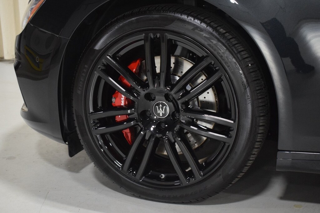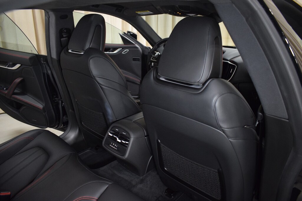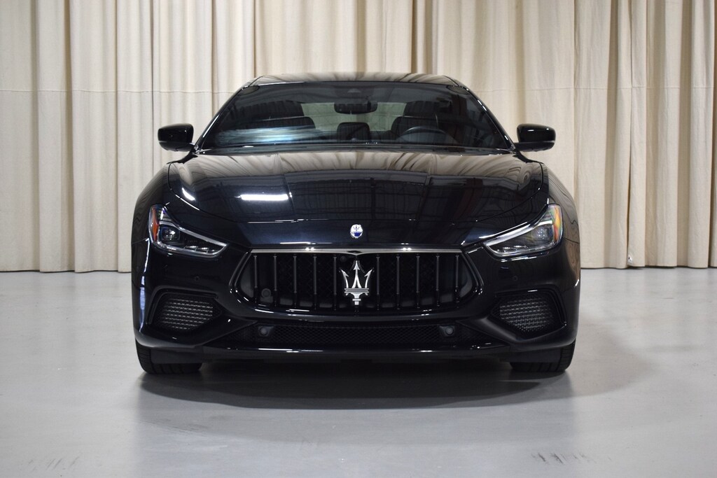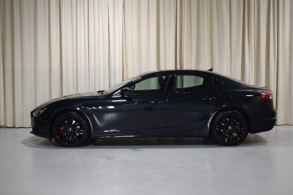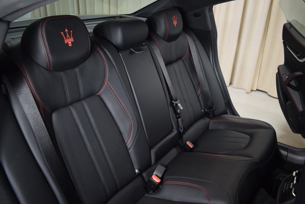 2024 Maserati Ghibli Modena Ultima Q4 in Nero Assoluto exterior with Black and Red interior. The Maserati Ghibli Modena features a 3.0L Twin-Turbo V6 Engine with 424 hp.
