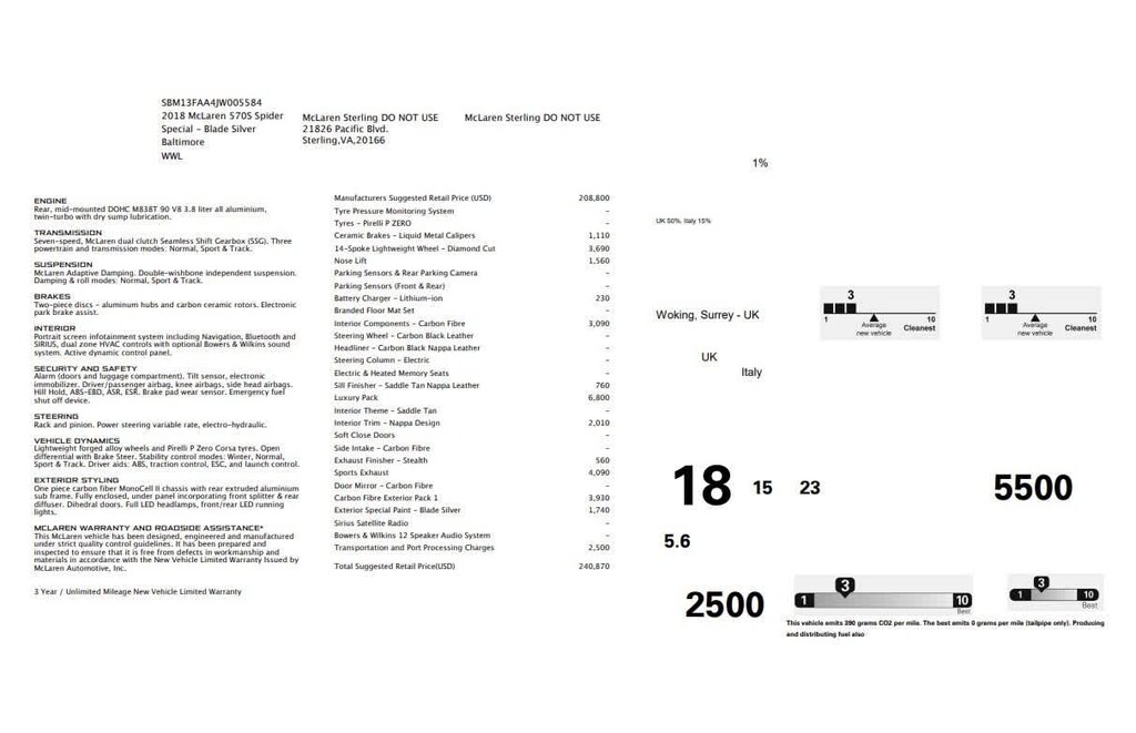 Blade Silver 2018 McLaren 570S RWD 7-Speed Manual 3.8L V8 Twin Turbocharged