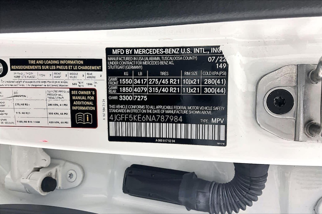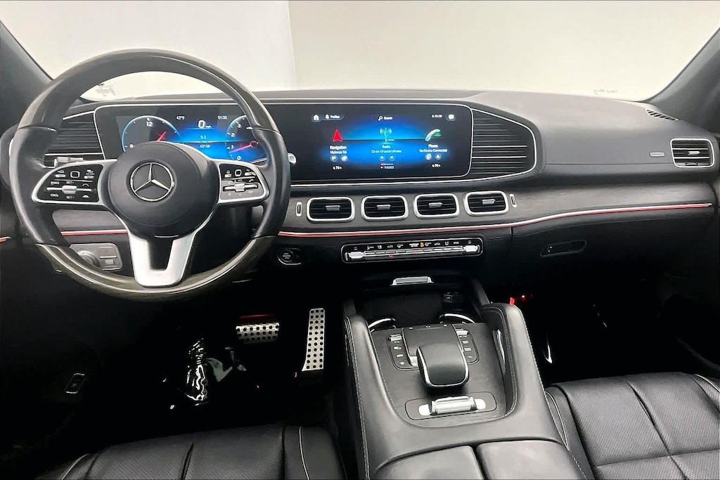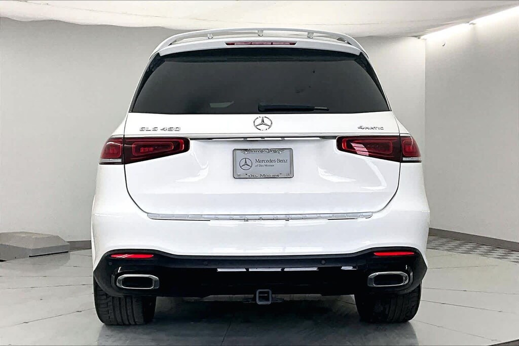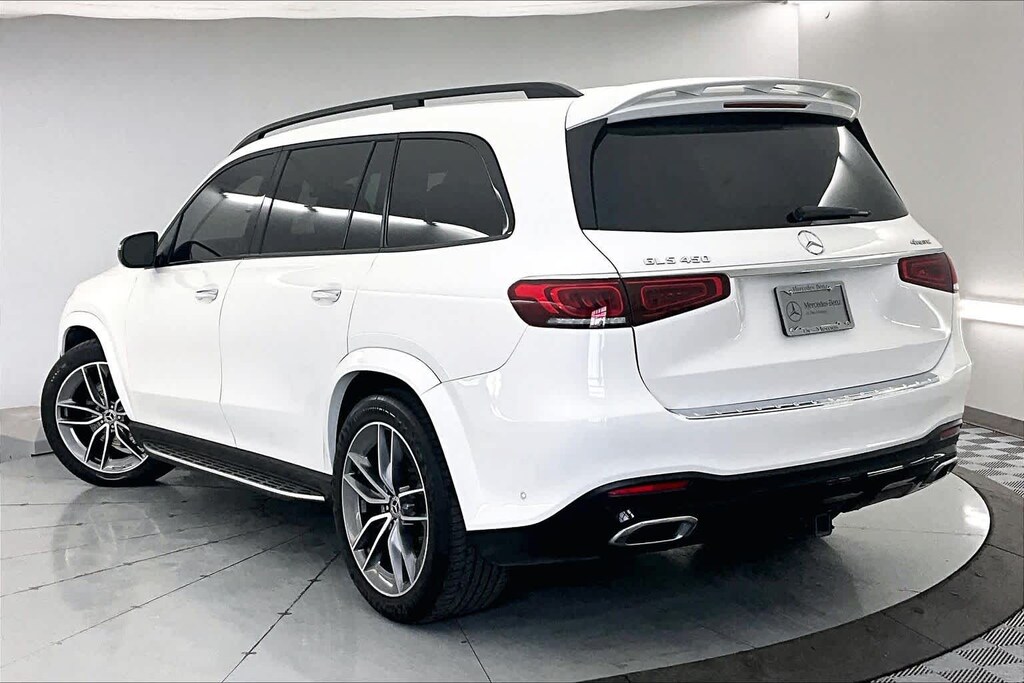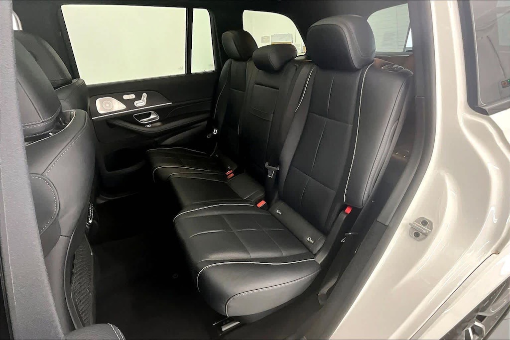 Acoustic Comfort Package, AMGî Line Exterior (AMGî Bodystyling), Driver Assistance Package Plus (Active Blind Spot Assist, Active Brake Assist w/Cross-Traffic Function, Active Distance Assist DISTRONICî, Active Emergency Stop Assist, Active Lane Change Assist, Active Lane Keeping Assist, Active Speed Limit Assist, Active Steering Assist, Active Stop & Go Assist, Evasive Steering Assist, PRE-SAFEî PLUS Rear-End Collision Protection, Route-Based Speed Adaptation, and Traffic Sign Assist), Night Package, Warmth & Comfort Package (Heated Armrest, Heated Rear Armrests, and Rapid Heating Front Seats), GLS 450 4MATICî, Mercedes-Benz Certified Pre-Owned Certified, 4MATICî, Black w/Exclusive Nappa Leather Upholstery, Head-Up Display, Heated & Cooled Front Cup Holders, Heated Rear Seats, Heated Steering Wheel, Illuminated Running Boards, MAGIC VISION CONTROL, Navigation system: MB Navigation, Panorama Sliding Sunroof, Wheels: 21 AMGî Twin 5-Spoke w/Black Accents, 13 Speakers, 3.27 Axle Ratio, 3rd row seats: split-bench, 4-Wheel Disc Brakes, 7-Seat Configuration, ABS brakes, Adaptive suspension, Air Conditioning, Alloy wheels, AM/FM radio: SiriusXM, Apple CarPlayî/Android Autoî, Auto High-beam Headlights, Auto tilt-away steering wheel, Auto-dimming door mirrors, Auto-dimming Rear-View mirror, Auto-leveling suspension, Automatic temperature control, Brake assist, Bumpers: body-color, Child-Seat-Sensing Airbag, Compass, Delay-off headlights, Driver door bin, Driver vanity mirror, Dual front impact airbags, Dual front side impact airbags, Electronic Stability Control, Emergency communication system: eCall Emergency System, Four wheel independent suspension, Front anti-roll bar, Front Bucket Seats, Front Center Armrest w/Storage, Front dual zone A/C, Front reading lights, Fully automatic headlights, Garage door transmitter: HomeLink, Genuine wood console insert, Genuine wood dashboard insert, Genuine wood door panel insert, Head restraints memory, Heated and Ventilated Power Front Seats w/Memory, Heated door mirrors, Heated front seats, Illuminated entry, Knee airbag, Low tire pressure warning, MB-Tex Upholstery, Memory seat, Occupant sensing airbag, Outside temperature display, Overhead airbag, Overhead console, Panic alarm, Passenger door bin, Passenger vanity mirror, Power adjustable front head restraints, Power door mirrors, Power driver seat, Power Liftgate, Power passenger seat, Power steering, Power windows, Premium audio system: MBUX, Radio: MBUX Multimedia System, Rain sensing wipers, Rear air conditioning, Rear anti-roll bar, Rear dual zone A/C, Rear fog lights, Rear reading lights, Rear seat center armrest, Rear window defroster, Rear window wiper, Remote keyless entry, Roof rack: rails only, Security system, Speed control, Speed-sensing steering, Speed-Sensitive Wipers, Split folding rear seat, Spoiler, Steering wheel memory, Steering wheel mounted audio controls, Tachometer, Telescoping steering wheel, Tilt steering wheel, Traction control, Trip computer, Turn signal indicator mirrors, Variably intermittent wipers, Ventilated front seats, and Weather band radio. GLS 450 4MATICî, 4MATICî, Black w/Exclusive Nappa Leather Upholstery, Acoustic Comfort Package, Active Blind Spot Assist, Active Brake Assist w/Cross-Traffic Function, Active Distance Assist DISTRONICî, Active Emergency Stop Assist, Active Lane Change Assist, Active Lane Keeping Assist, Active Speed Limit Assist, Active Steering Assist, Active Stop & Go Assist, AMGî Bodystyl