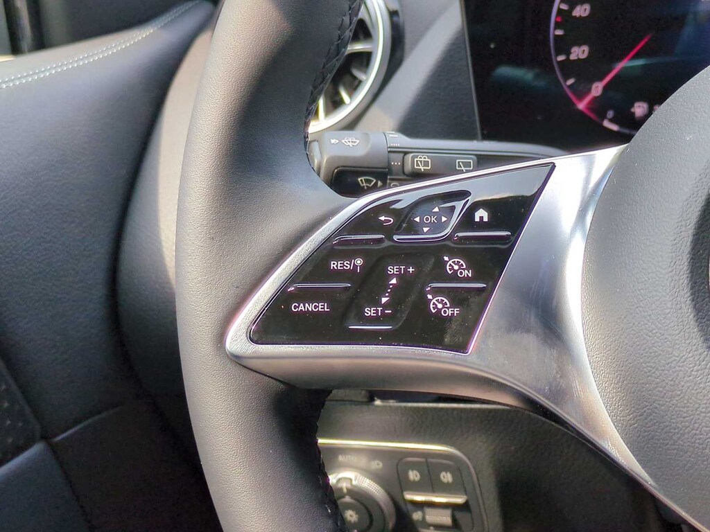 Equipment highlights include heated front seats, heated steering wheel, Winter Package, MBUX multimedia system, fingerprint sensor, steering wheel shift paddles, power-folding mirrors, star-pattern trim, 18-inch twin 5-spoke wheels, all-season tires, and thoughtful safety and convenience features throughout.