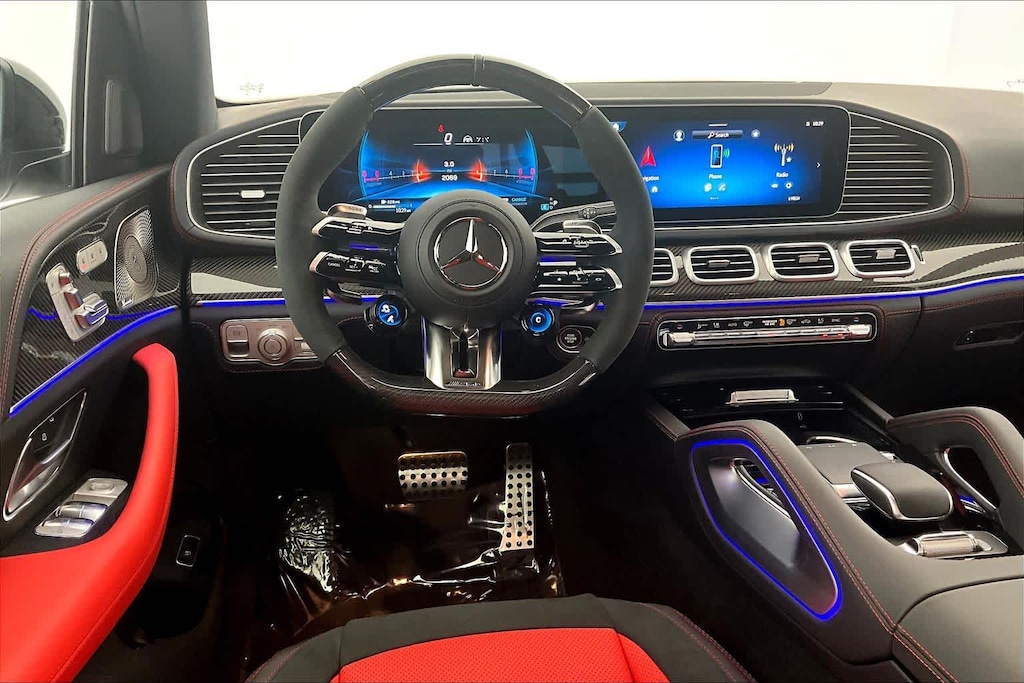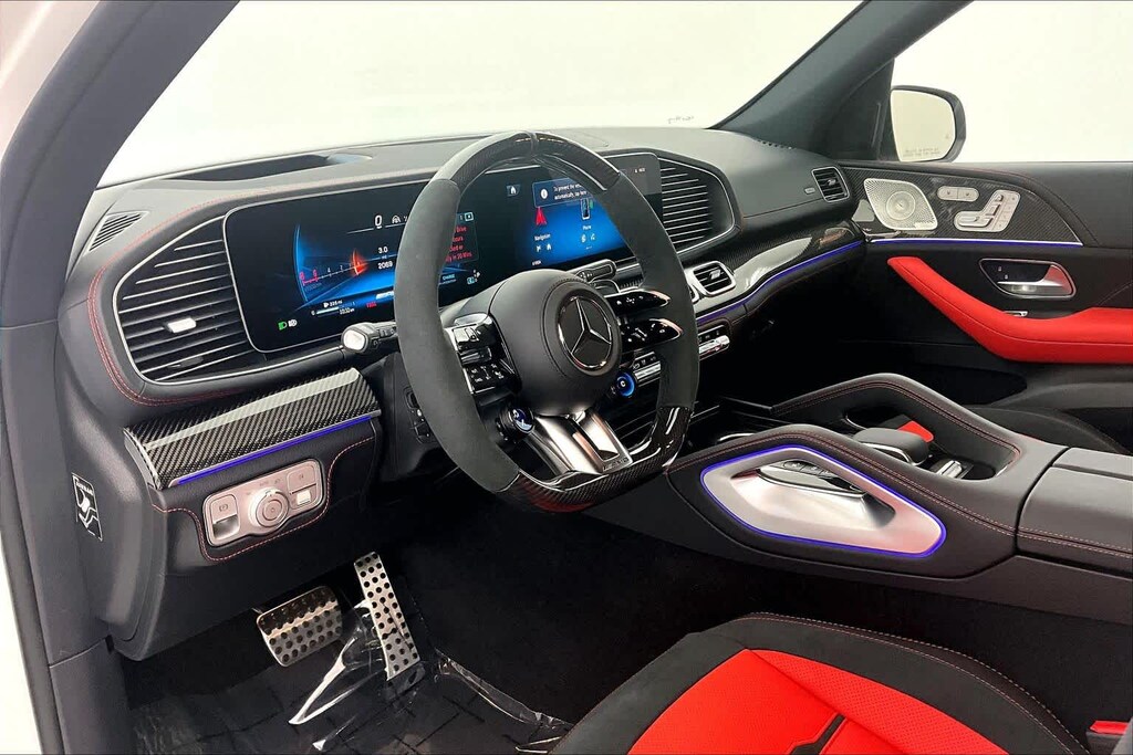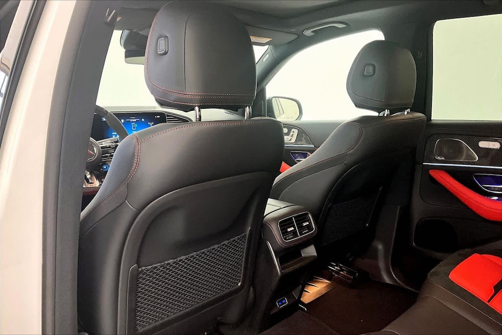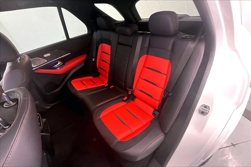 AIR BALANCE Package with Fragrance, AMGî Night Package, Driver Assistance Package (Active Distance Assist DISTRONICî, Active Lane Change Assist, Active Lane Keeping Assist, Active Speed Limit Assist, Active Steering Assist, Active Stop & and Go Assist, Extended Restart in Stop and Go Traffic, and Route-Based Speed Adaptation), Pinnacle Trim (Front Doors AMGî Logo Projectors, Head-Up Display, MBUX Interior Assistant, Multicontour Front Seats with Massage Function, Rapid Heating Functionality For Front Seats, and Temperature Controlled Cupholders), GLE GLE 53 AMGî 4MATICî, Red Pepper/Black w/Nappa Leather Upholstery, AMGî Performance Steering Wheel in Carbon Fiber/Microfiber, Burmesterî Surround Sound System, Heated front seats, Heated Rear Seats, Heated Steering Wheel, Increased Cowing Capacity, Power moonroof, Pre-Installation For Online Music Streaming, Soft Close Doors, Sound Personalization, Trailer Hitch, Ventilated front seats, Wheels: 21 AMGî Twin 5-Spoke Matte Black, 13 Speakers, 4-Wheel Disc Brakes, ABS brakes, Adaptive suspension, Air Conditioning, AM/FM radio: SiriusXM, Anti-whiplash front head restraints, Apple CarPlayî/Android Autoî, Auto High-beam Headlights, Auto tilt-away steering wheel, Auto-dimming door mirrors, Auto-dimming Rear-View mirror, Auto-leveling suspension, Automatic temperature control, Brake assist, Brushed Aluminum Trim, Bumpers: body-color, Compass, Delay-off headlights, Driver door bin, Driver vanity mirror, Dual front impact airbags, Dual front side impact airbags, Electronic Stability Control, Emergency communication system: eCall Emergency System, Exterior Parking Camera Rear, Four wheel independent suspension, Front anti-roll bar, Front Bucket Seats, Front Center Armrest, Front dual zone A/C, Front reading lights, Fully automatic headlights, Garage door transmitter: HomeLink, Heated and Ventilated Power Front Seats with Driver Memory, Heated door mirrors, High Performance Tires, Illuminated entry, Knee airbag, Leather steering wheel, Low tire pressure warning, MB-Tex Dashboard and Door Panels, Memory seat, Nappa Leather Upholstery, Navigation system: MBUX, Occupant sensing airbag, Outside temperature display, Overhead airbag, Panic alarm, Passenger door bin, Passenger vanity mirror, Power adjustable front head restraints, Power door mirrors, Power driver seat, Power Liftgate, Power passenger seat, Power steering, Power windows, Premium audio system: MBUX, Radio data system, Radio: 12.3 Media Display with Touchscreen, Rain sensing wipers, Rear anti-roll bar, Rear fog lights, Rear reading lights, Rear seat center armrest, Rear window defroster, Rear window wiper, Remote keyless entry, Security system, Speed control, Speed-sensing steering, Speed-Sensitive Wipers, Split folding rear seat, Spoiler, Sport steering wheel, Steering wheel memory, Steering wheel mounted audio controls, Tachometer, Telescoping steering wheel, Tilt steering wheel, Traction control, Trip computer, Turn signal indicator mirrors, and Weather band radio. Local Trade, GLE GLE 53 AMGî 4MATICî, Red Pepper/Black w/Nappa Leather Upholstery, Active Distance Assist DISTRONICî, Active Lane Change Assist, Active Lane Keeping Assist, Active Speed Limit Assist, Active Steering Assist, Active Stop & and Go Assist, AIR BALANCE Package with Fragrance, AMGî Night Package, AMGî Performance Steering Wheel in Carbon Fiber/Microfiber, Burmesterî Surround Sound System, Driver Assistance Package, Extended