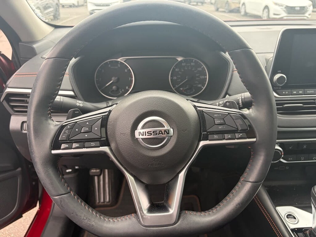 SR Premium Package (Heated Front Seats, Heated Outside Mirrors, and Single Panel Moonroof), Lithia 60 Day/3,000 mile Warranty Certified, CVT with Xtronic, 19 Alloy Wheels, 4-Wheel Disc Brakes, 6 Speakers, ABS brakes, Air Conditioning, Alloy wheels, AM/FM radio: SiriusXM, Blind Spot Warning, Body-Colored Splash Guards, Brake assist, Bumpers: body-color, Delay-off headlights, Driver door bin, Driver vanity mirror, Dual front impact airbags, Dual front side impact airbags, Electronic Stability Control, Four wheel independent suspension, Front anti-roll bar, Front Bucket Seats, Front Center Armrest w/Storage, Front reading lights, Front Sport Bucket Seats, Fully automatic headlights, Illuminated entry, Impact Sensor, Knee airbag, Leather Shift Knob, Low tire pressure warning, NissanConnect featuring Apple CarPlay and Android Auto, Occupant sensing airbag, Outside temperature display, Overhead airbag, Overhead console, Panic alarm, Passenger door bin, Passenger vanity mirror, Power door mirrors, Power driver seat, Power steering, Power windows, Radio data system, Radio: AM/FM Audio System, Rear anti-roll bar, Rear reading lights, Rear seat center armrest, Rear side impact airbag, Rear window defroster, Remote keyless entry, Security system, Speed control, Speed-sensing steering, Split folding rear seat, Spoiler, Sport Seat Trim, SR Floor Mats/Trunk Mat/Hideaway Nets, Steering wheel mounted audio controls, Tachometer, Telescoping steering wheel, Tilt steering wheel, Traction control, Trip computer, and Variably intermittent wipers. CARFAX One-Owner. Certified. Scarlet Ember Tintcoat 2019 Nissan Altima 2.5 SR FWD CVT with Xtronic 2.5L 4-Cylinder DOHC 16V CVT with Xtronic. Clean CARFAX.