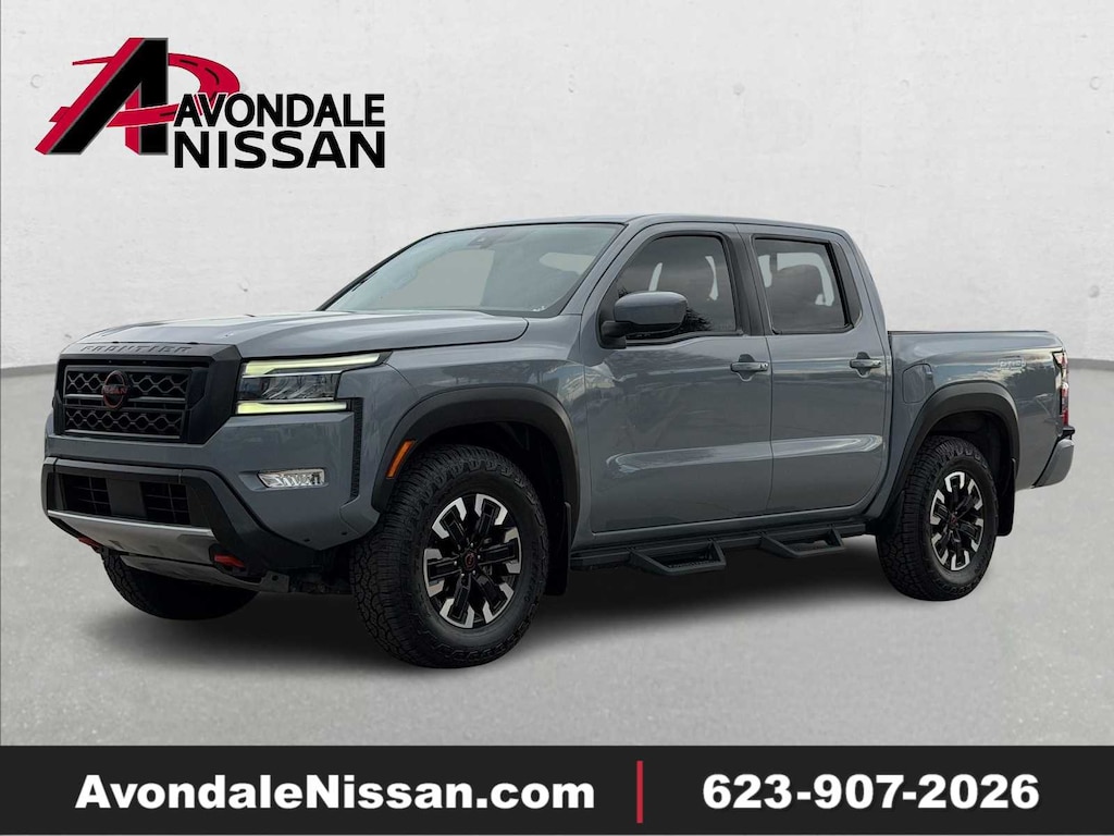 Off-Road Protection Package, Tow Package, Nissan Certified Certified, 4WD, 17 Alloy Wheels, 3.692 Axle Ratio, 4-Wheel Disc Brakes, 6 Speakers, ABS brakes, Air Conditioning, Alloy wheels, AM/FM radio: SiriusXM, Anti-whiplash front head restraints, Automatic temperature control, Brake assist, Bumpers: body-color, Delay-off headlights, Driver door bin, Driver vanity mirror, Dual front impact airbags, Dual front side impact airbags, Electronic Stability Control, Electronic Tailgate Lock, Emergency communication system: NissanConnect Services, Front anti-roll bar, Front Bucket Seats, Front Center Armrest, Front dual zone A/C, Front fog lights, Front reading lights, Front wheel independent suspension, Fully automatic headlights, Illuminated entry, Knee airbag, Leather Shift Knob, Low tire pressure warning, Navigation system: Nissan Navigation with Voice Recognition, Occupant sensing airbag, Off-Road Style Step Rails, Overhead airbag, Overhead console, Panic alarm, Passenger door bin, Passenger vanity mirror, Power door mirrors, Power driver seat, Power steering, Power windows, PRO Embroidered Premium Cloth Seat Trim, PRO-4X Carpeted Floor Mats, PRO-4X Mud Flaps, Radio data system, Radio: SXM/AM/FM/AUX/USB Audio System w/6 Speakers, Rear anti-roll bar, Rear seat center armrest, Rear step bumper, Remote Engine Starter Accessory, Remote keyless entry, Security system, Speed control, Speed-sensing steering, Split folding rear seat, Steering wheel mounted audio controls, Tachometer, Tilt steering wheel, Traction control, Trip computer, Variably intermittent wipers, and Voltmeter. CARFAX One-Owner. Certified. Boulder Gray Pearl 2023 Nissan Frontier PRO-4X Priced below KBB Fair Purchase Price! 4WD 9-Speed Automatic 3.8L DI DOHC 24V V6 4WD. Clean CARFAX.