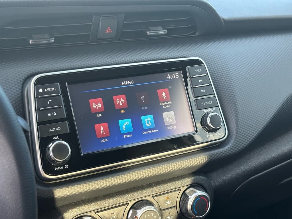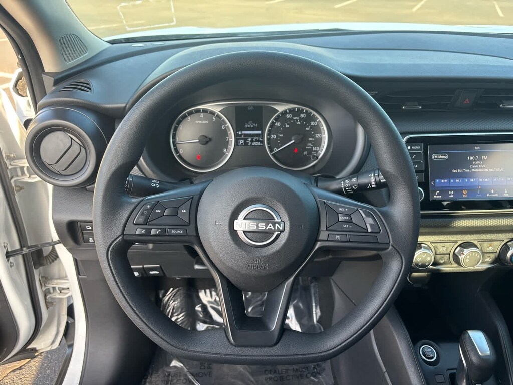 Lithia 60 Day/3,000 mile Warranty Certified, 16 Steel Wheels w/Full Covers, 3.93 Axle Ratio, 6 Speakers, ABS brakes, Air Conditioning, AM/FM radio, Apple CarPlay/Android Auto, Auto High-beam Headlights, Blind Spot Warning, Brake assist, Bumpers: body-color, Carpeted Floor Mats w/Cargo Mat, Center Armrest w/Storage, Cloth Seat Trim, Driver door bin, Driver vanity mirror, Drivers Seat Mounted Armrest, Dual front impact airbags, Dual front side impact airbags, Electronic Stability Control, Front anti-roll bar, Front Bucket Seats, Front reading lights, Front wheel independent suspension, Fully automatic headlights, Illuminated entry, Knee airbag, Low tire pressure warning, Occupant sensing airbag, Outside temperature display, Overhead airbag, Panic alarm, Passenger door bin, Passenger vanity mirror, Power door mirrors, Power steering, Power windows, Radio data system, Radio: AM/FM Audio System, Rear Parking Sensors, Rear reading lights, Rear side impact airbag, Rear window defroster, Rear window wiper, Remote keyless entry, Speed control, Splash Guards Grain (4 Piece), Split folding rear seat, Sport steering wheel, Steering wheel mounted audio controls, Tachometer, Telescoping steering wheel, Tilt steering wheel, Traction control, Trip computer, and Variably intermittent wipers. CARFAX One-Owner. Certified. Fresh Powder 2023 Nissan Kicks S FWD CVT with Xtronic 1.6L 4-Cylinder DOHC 16V Clean CARFAX.