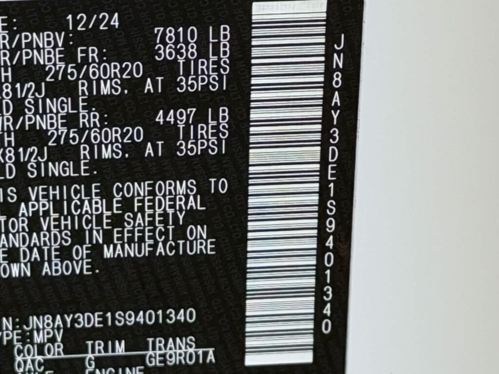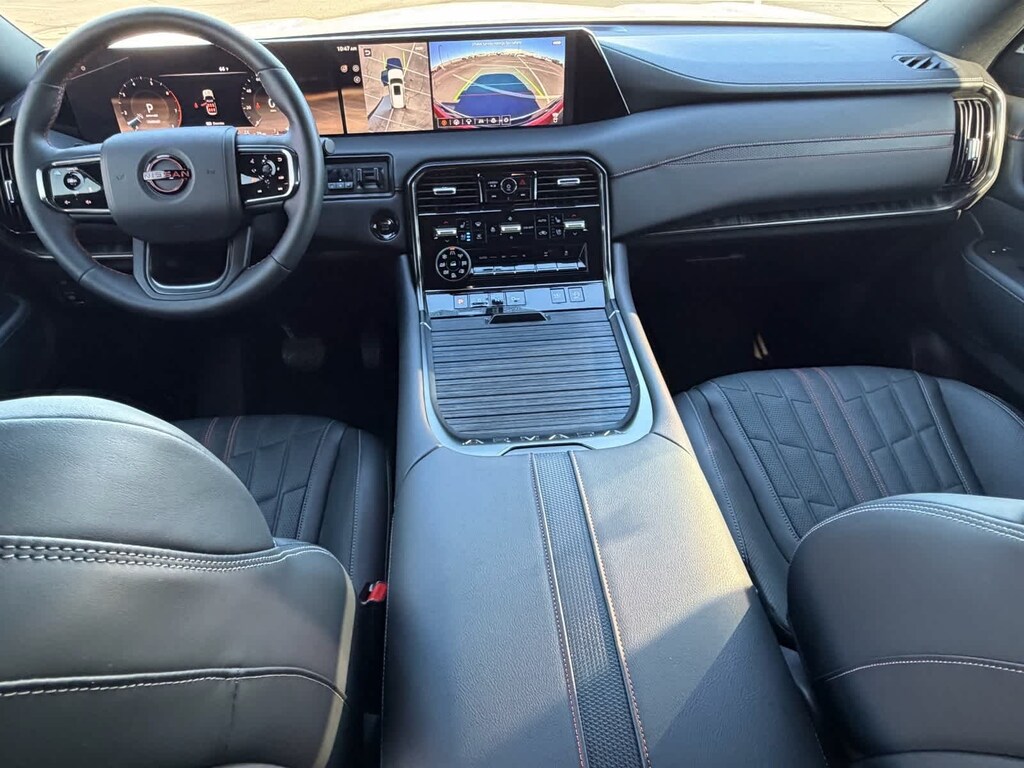 Nissan Certified Certified, 4WD, 12 Speakers, 3rd row seats: split-bench, 4-Wheel Disc Brakes, ABS brakes, Adaptive suspension, Air Conditioning, Alloy wheels, AM/FM radio: SiriusXM, Anti-whiplash front head restraints, Auto High-beam Headlights, Auto tilt-away steering wheel, Auto-dimming door mirrors, Auto-dimming Rear-View mirror, Auto-leveling suspension, Automatic temperature control, Brake assist, Bumpers: body-color, Delay-off headlights, Driver door bin, Driver vanity mirror, Dual front impact airbags, Dual front side impact airbags, Electronic Stability Control, Emergency communication system: NissanConnect Services, Four wheel independent suspension, Front anti-roll bar, Front Bucket Seats, Front Center Armrest, Front dual zone A/C, Front fog lights, Front reading lights, Fully automatic headlights, Garage door transmitter: myQ Connected Garage, Genuine wood dashboard insert, Heated door mirrors, Heated Front Bucket Seats, Heated front seats, Heated steering wheel, HVAC memory, Illuminated entry, Knee airbag, Leather steering wheel, Low tire pressure warning, Memory seat, Navigation System, Occupant sensing airbag, Outside temperature display, Overhead airbag, Overhead console, Panic alarm, Passenger door bin, Passenger vanity mirror, Power door mirrors, Power driver seat, Power Liftgate, Power passenger seat, Power steering, Power windows, PRO-4X Unique Quilted Leather Seat Trim, Radio: NissanConnect w/SiriusXM 360L, Rain sensing wipers, Rear air conditioning, Rear anti-roll bar, Rear reading lights, Rear seat center armrest, Rear window defroster, Rear window wiper, Reclining 3rd row seat, Remote keyless entry, Security system, Speed control, Speed-sensing steering, Speed-Sensitive Wipers, Split folding rear seat, Spoiler, Steering wheel memory, Steering wheel mounted audio controls, Tachometer, Telescoping steering wheel, Tilt steering wheel, Traction control, Trip computer, Turn signal indicator mirrors, Variably intermittent wipers, Voltmeter, and Wheels: 20 Painted PRO-4X Alloy. CARFAX One-Owner. Certified. Aspen White Tricoat 2025 Nissan Armada PRO-4X Priced below KBB Fair Purchase Price! 4WD 9-Speed Automatic 3.5L DOHC 4WD.