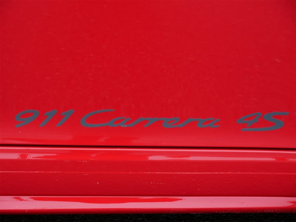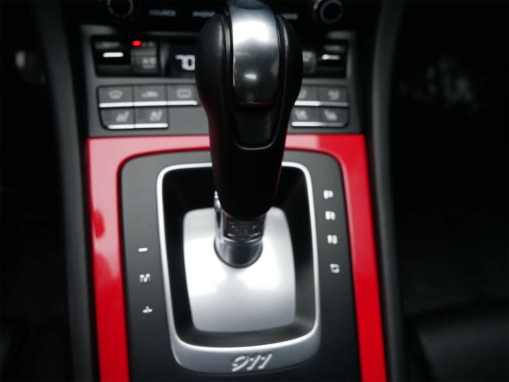 Exterior and interior details elevate this 911??s presence, including SportDesign exterior mirrors, side skirts painted in exterior color, wheels painted in high gloss black, tinted taillights, and black Porsche and 911 logos with matching model designation decals on the doors. Inside, the cabin is accented by interior trim painted in exterior color, a black tachometer dial, Guards Red seat belts, and a leather trimmed interior throughout.