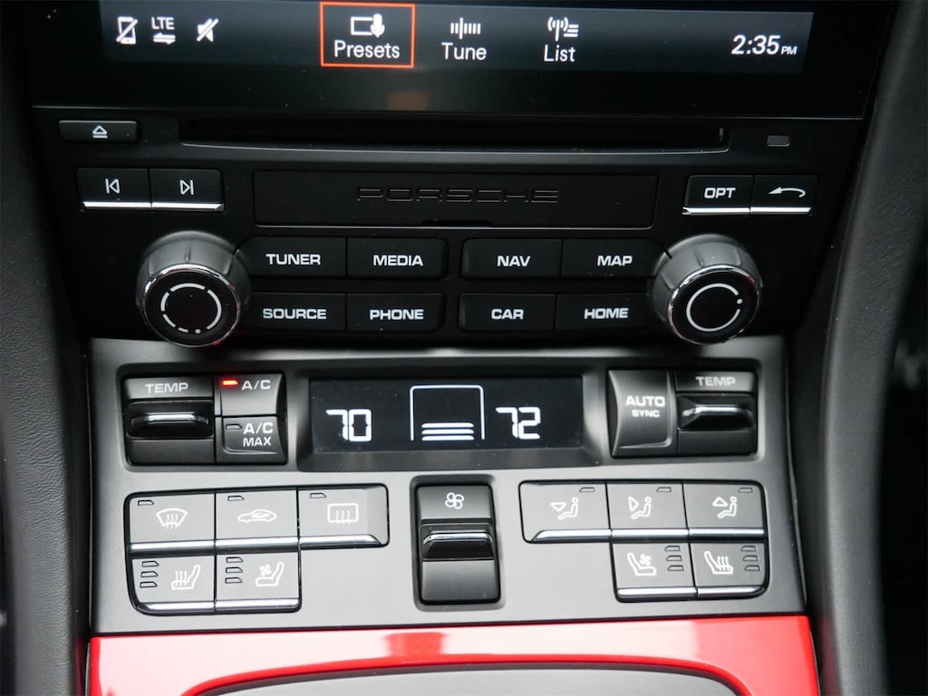 Performance focused options include the Sport Package, Sport Chrono Package, rear axle steering, and PASM Sport Suspension lowered 20 millimeters, creating a sharp and engaging driving experience. The seven speed Porsche Doppelkupplung PDK transmission and sport exhaust system with silver tailpipes further enhance performance and sound. A GT Sport steering wheel puts the driver directly connected to the road.