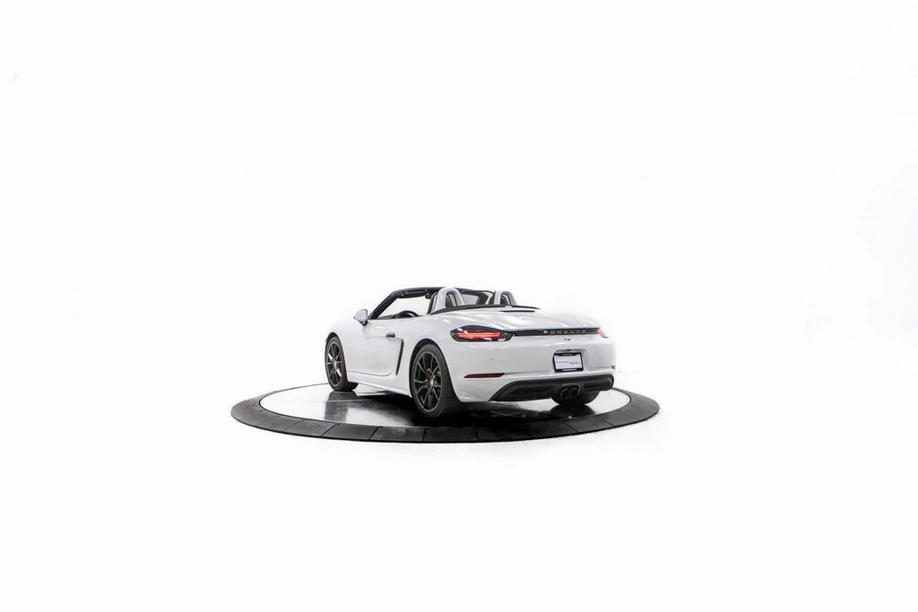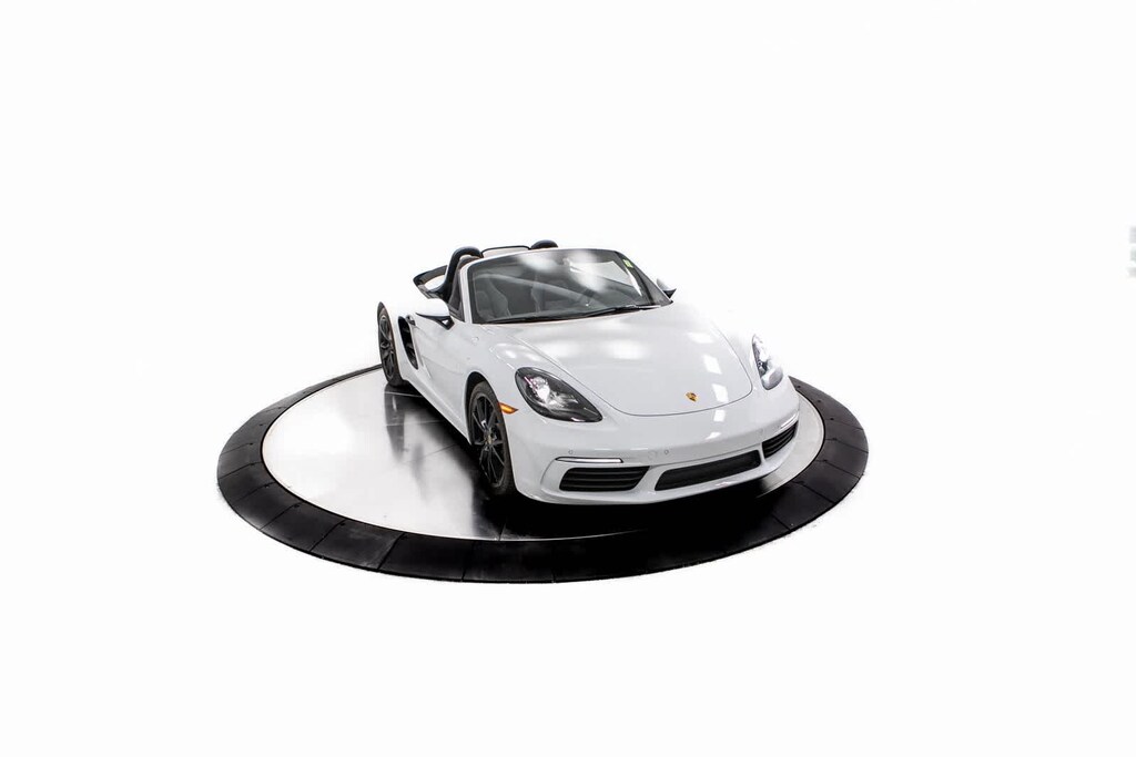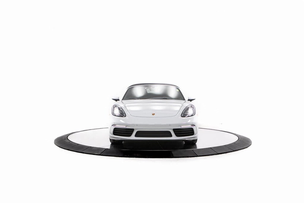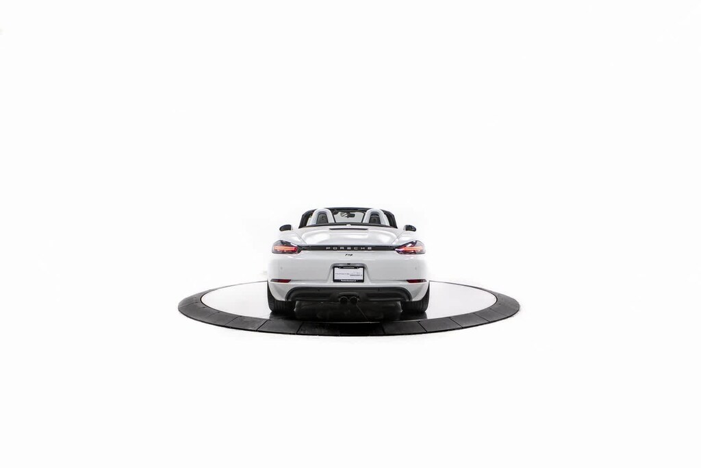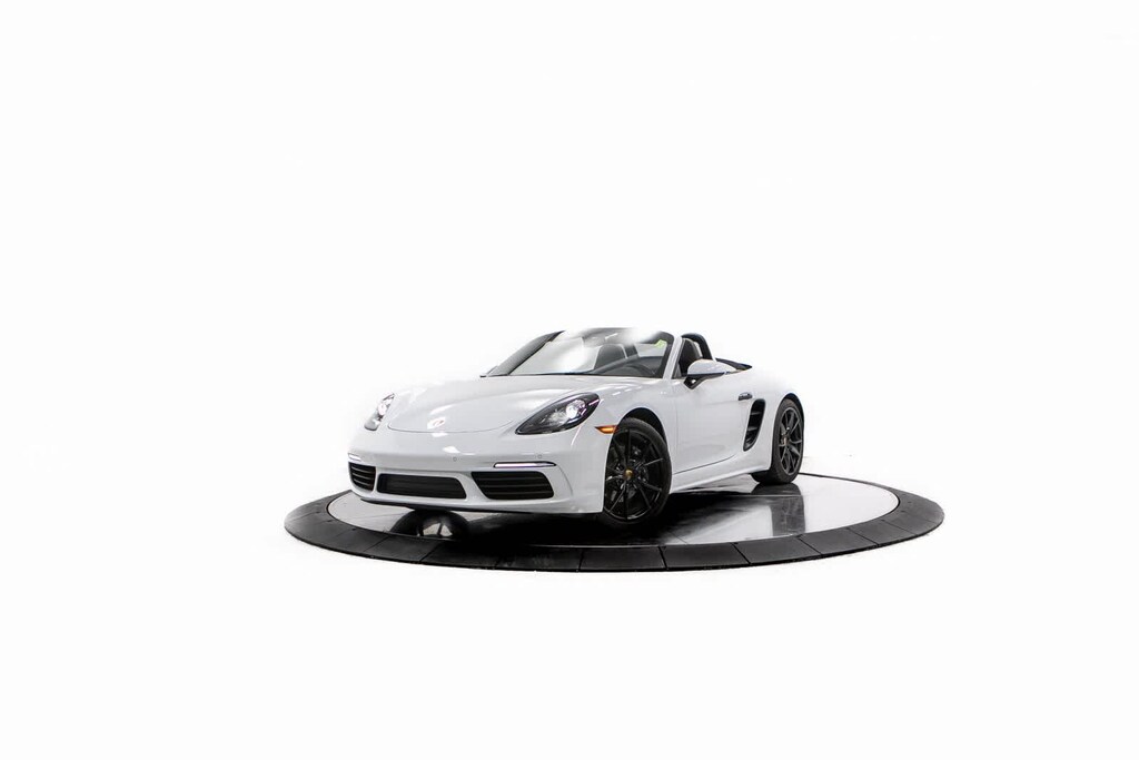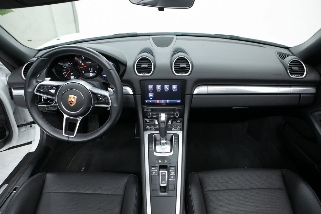Porsche Certified, 2-Way Sport Seats, 4-Wheel Disc Brakes, 6 Speakers, ABS brakes, Air Conditioning, Alloy wheels, AM/FM radio: SiriusXM, Brake assist, Bumpers: body-color, CD player, Convertible roof lining, Convertible roof wind blocker, Delay-off headlights, Driver door bin, Driver vanity mirror, Dual front impact airbags, Dual front side impact airbags, DVD-Audio, Electronic Stability Control, Exterior Parking Camera Rear, Four wheel independent suspension, Front anti-roll bar, Front Bucket Seats, Front Center Armrest, Front reading lights, Fully automatic headlights, Garage door transmitter: HomeLink, Glass rear window, Headlight cleaning, Heated door mirrors, High intensity discharge headlights: Bi-Xenon, Illuminated entry, Integrated roll-over protection, Knee airbag, Leather Shift Knob, Low tire pressure warning, Occupant sensing airbag, Outside temperature display, Overhead airbag, Partial Leather Seat Trim, Passenger door bin, Passenger vanity mirror, Porsche Communication Management, Power convertible roof, Power door mirrors, Power driver seat, Power passenger seat, Power steering, Power windows, Radio data system, Rear anti-roll bar, Rear window defroster, Remote keyless entry, Security system, Speed control, Spoiler, Sport steering wheel, Tachometer, Telescoping steering wheel, Tilt steering wheel, Traction control, Trip computer, Variably intermittent wipers, Wheels: 18 Boxster Design. Odometer is 23658 miles below market average! White 2019 Porsche 718 Boxster Base RWD 2.0L H4 Turbocharged DOHC 16V LEV3-ULEV125 300hp