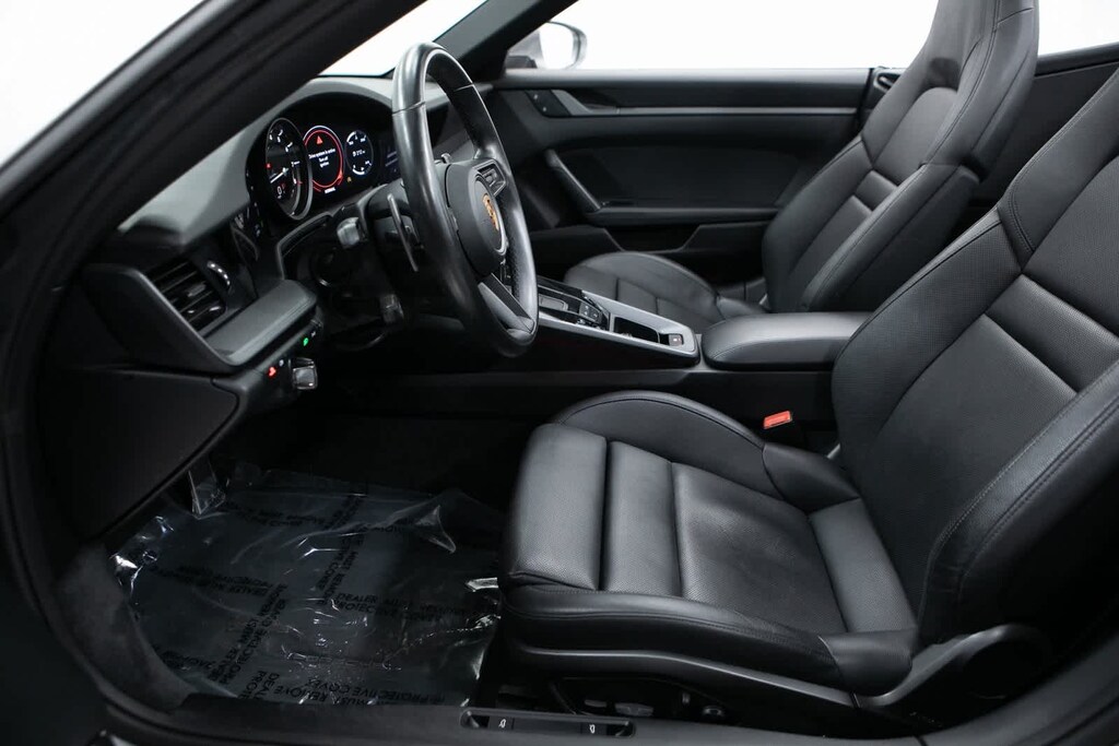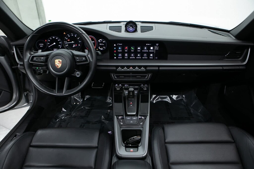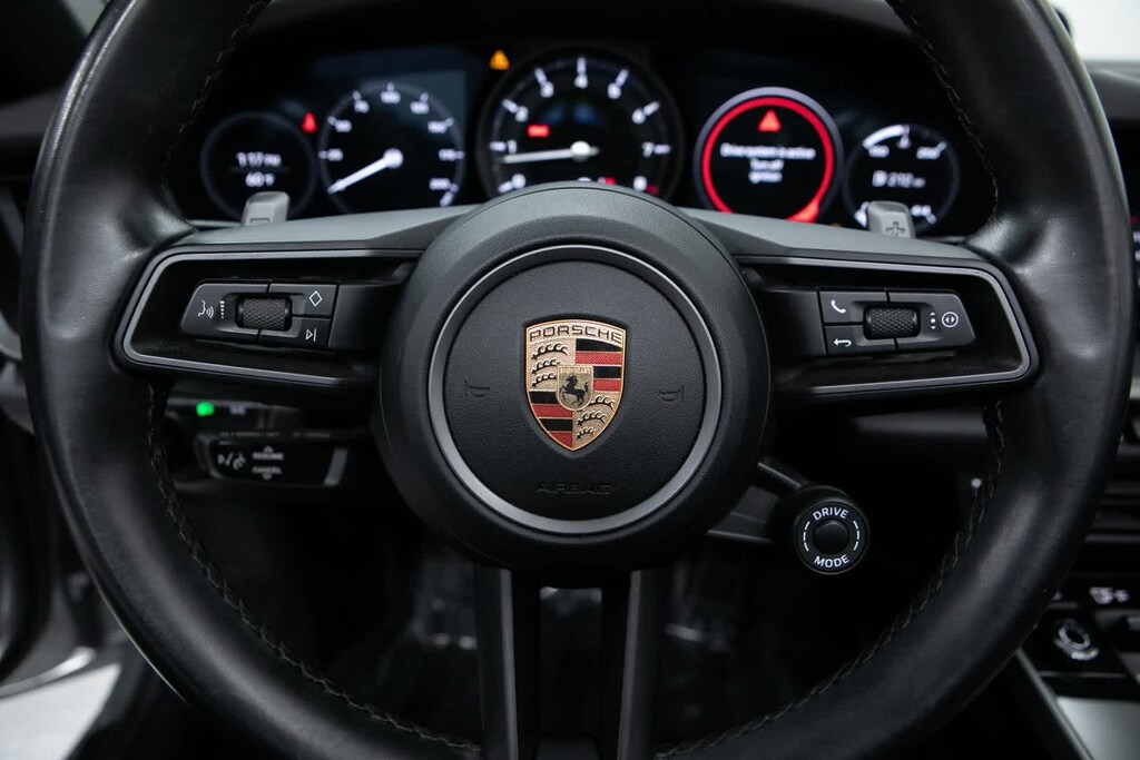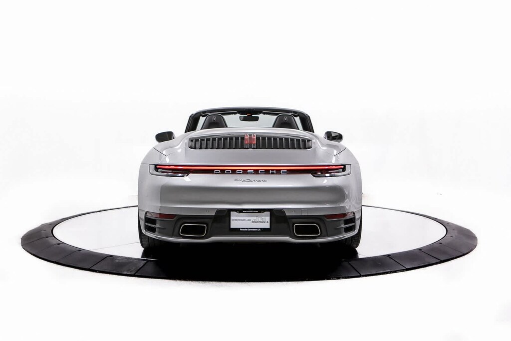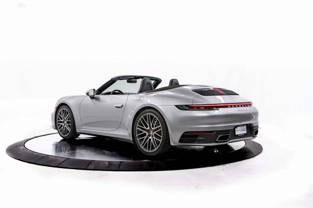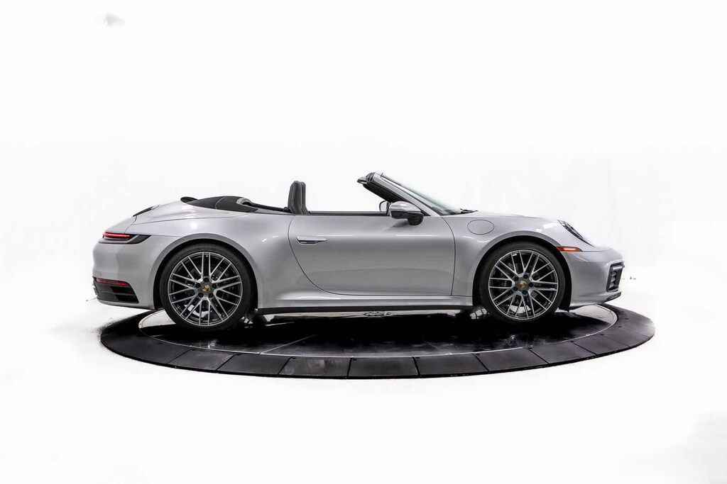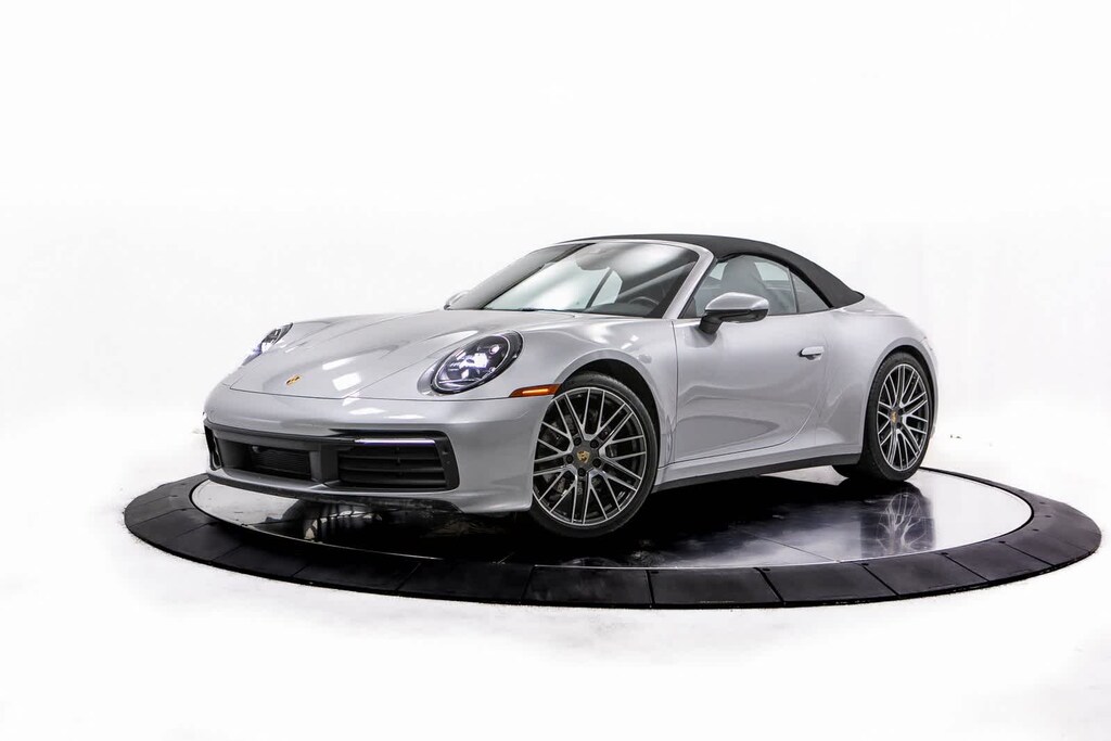 Porsche Certified, 4-Way Sport Seats, 4-Wheel Disc Brakes, 8 Speakers, ABS brakes, Adaptive suspension, Air Conditioning, Alloy wheels, Auto-dimming door mirrors, Auto-dimming Rear-View mirror, Automatic temperature control, Brake assist, Bumpers: body-color, Convertible roof lining, Convertible roof wind blocker, Delay-off headlights, Driver door bin, Driver vanity mirror, Dual front impact airbags, Dual front side impact airbags, Electronic Stability Control, Exterior Parking Camera Rear, Four wheel independent suspension, Front anti-roll bar, Front Bucket Seats, Front Center Armrest, Front dual zone A/C, Front reading lights, Fully automatic headlights, Garage door transmitter: HomeLink, Glass rear window, Heated door mirrors, Heated front seats, Illuminated entry, Integrated roll-over protection, Leather Seat Trim, Leather steering wheel, Low tire pressure warning, Navigation system: Porsche Communication Management (PCM), Occupant sensing airbag, Outside temperature display, Overhead airbag, Overhead console, Passenger door bin, Passenger vanity mirror, Porsche Communication Management, Power convertible roof, Power door mirrors, Power driver seat, Power passenger seat, Power steering, Power windows, Radio data system, Rain sensing wipers, Rear anti-roll bar, Rear fog lights, Rear window defroster, Remote keyless entry, Security system, Speed control, Split folding rear seat, Spoiler, Sport steering wheel, Steering wheel mounted audio controls, Tachometer, Telescoping steering wheel, Tilt steering wheel, Traction control, Trip computer, Variably intermittent wipers, Wheels: 19 Front/20 Rear Carrera. GT Silver Metallic 2022 Porsche 911 Carrera Carrera RWD 8-Speed Porsche Doppelkupplung (PDK) 3.0L H6 Turbocharged DOHC 24V LEV3-ULEV70 379hp
