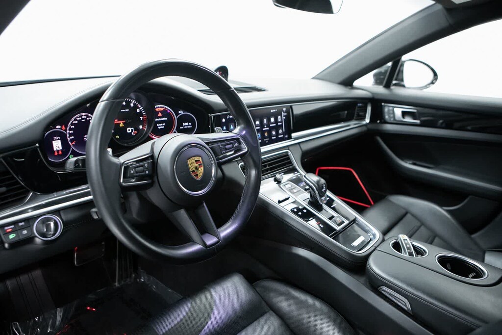 Porsche Certified, AWD, 10 Speakers, 14-Way Power Seats w/Memory Package, 4-Wheel Disc Brakes, 4-Zone Climate Control, 8-Way Heated Front Comfort Seat, ABS brakes, Adaptive suspension, Air Conditioning, Alloy wheels, AM/FM radio: SiriusXM, Ambient Lighting Plus, Apple CarPlay, Auto-dimming door mirrors, Auto-dimming Rear-View mirror, Automatic temperature control, BOSE Surround Sound System, Brake assist, Bumpers: body-color, Compass, Delay-off headlights, Driver door bin, Driver vanity mirror, Dual front impact airbags, Dual front side impact airbags, Electronic Stability Control, Exterior Parking Camera Rear, Four wheel independent suspension, Front & Rear Heated Seats, Front anti-roll bar, Front Bucket Seats, Front Center Armrest, Front dual zone A/C, Front reading lights, Front Seat Ventilation, Fully automatic headlights, Garage door transmitter: HomeLink, Heated door mirrors, Heated front seats, Illuminated entry, Knee airbag, Lane Change Assist (LCA), Leather Shift Knob, Leather steering wheel, LED Headlights w/Porsche Dynamic Light System, LED-Matrix Headlights w/PDLS+, Low tire pressure warning, Memory seat, Navigation System, Occupant sensing airbag, Outside temperature display, Overhead airbag, Overhead console, Panic alarm, Partial Leather Seat Trim, Passenger door bin, Passenger vanity mirror, Porsche Communication Management, Power door mirrors, Power driver seat, Power Liftgate, Power moonroof, Power passenger seat, Power steering, Power windows, Premium Package, Radio data system, Rain sensing wipers, Rear anti-roll bar, Rear fog lights, Rear reading lights, Rear seat center armrest, Rear side impact airbag, Rear window defroster, Remote keyless entry, Security system, Soft Close Doors, Speed control, Split folding rear seat, Spoiler, Steering wheel mounted audio controls, Tachometer, Telescoping steering wheel, Tilt steering wheel, Traction control, Trip computer, Variably intermittent wipers, Wheels: 19 Panamera S, AWD. Black 2022 Porsche Panamera 4S 4S AWD 8-Speed Porsche Doppelkupplung (PDK) V6