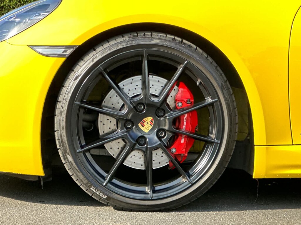 Driver confidence is reinforced by advanced features such as Lane Change Assist, ParkAssist Front & Rear, Electronic Stability Control, Power Steering Plus, and LED Headlights with Porsche Dynamic Light System Plus. With the top down, the Convertible Wind Blocker ensures a refined open-air experience, while the SportDesign Package, Rear Wing, Supplemental Safety Bars, and Model Designation in High Gloss Black deliver an aggressive, unmistakable GTS presence. Completing the look are 20 718 Sport Wheels in Satin Black.