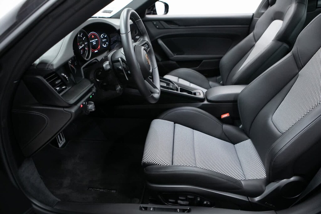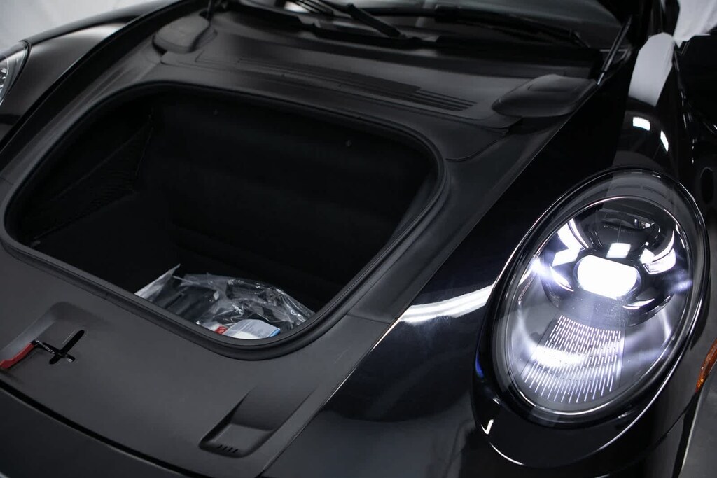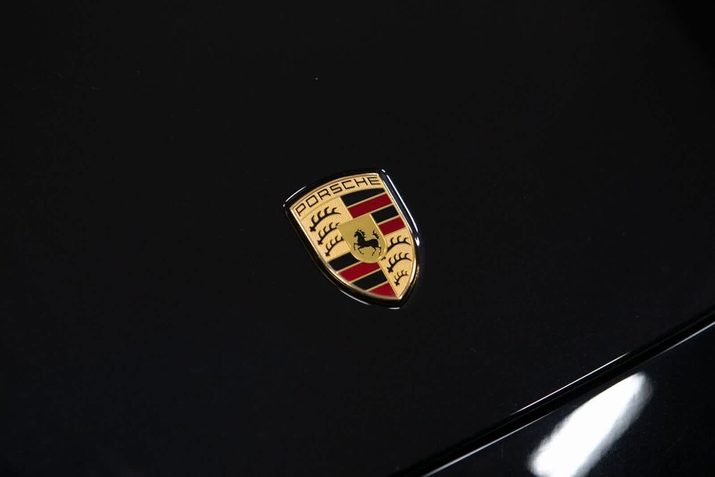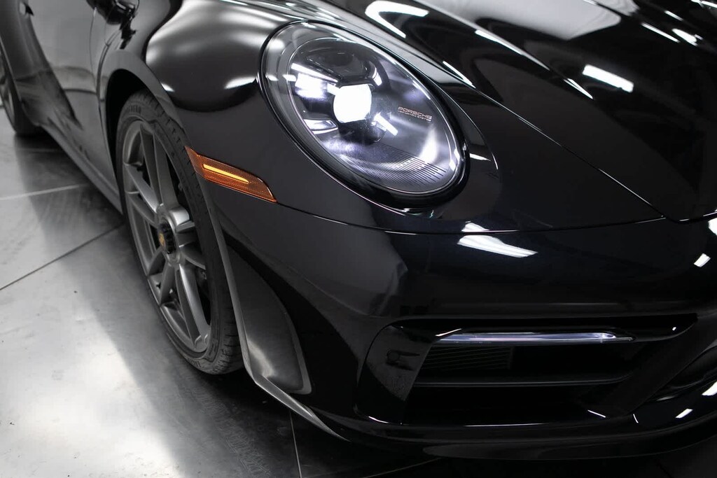 Porsche Certified, AWD, 18-Way Adaptive Sport Seats Plus w/Memory Package, 4-Wheel Disc Brakes, 8 Speakers, ABS brakes, Adaptive suspension, Air Conditioning, Alloy wheels, Auto High-beam Headlights, Auto-dimming door mirrors, Auto-dimming Rear-View mirror, Automatic temperature control, Brake assist, Bumpers: body-color, Convertible roof lining, Delay-off headlights, Driver door bin, Driver vanity mirror, Dual front impact airbags, Dual front side impact airbags, Electronic Stability Control, Exterior Parking Camera Rear, Four wheel independent suspension, Front anti-roll bar, Front Bucket Seats, Front Center Armrest, Front dual zone A/C, Front reading lights, Fully automatic headlights, Garage door transmitter: HomeLink, Glass rear window, Heated door mirrors, Heated front seats, Illuminated entry, Integrated roll-over protection, Leather Seat Trim w/Sport-Tex Centers, Leather steering wheel, Low tire pressure warning, Memory seat, Navigation system: Porsche Communication Management (PCM), Occupant sensing airbag, Outside temperature display, Overhead airbag, Overhead console, Passenger door bin, Passenger vanity mirror, Porsche Communication Management, Power convertible roof, Power door mirrors, Power driver seat, Power passenger seat, Power steering, Power windows, Radio data system, Rain sensing wipers, Rear anti-roll bar, Rear fog lights, Rear window defroster, Remote keyless entry, Security system, Speed control, Split folding rear seat, Spoiler, Sport steering wheel, Steering wheel memory, Steering wheel mounted audio controls, Tachometer, Telescoping steering wheel, Tilt steering wheel, Traction control, Trip computer, Variably intermittent wipers, Wheels: 20 Fr/21 Rr 911 Turbo S in Satin Black, AWD. Jet Black 2023 Porsche 911 Edition 50 Years Porsche Design Edition 50 Years Porsche Design AWD 8-Speed Porsche Doppelkupplung (PDK) 3.0L H6 Turbocharged DOHC 24V LEV3-ULEV70 473hp