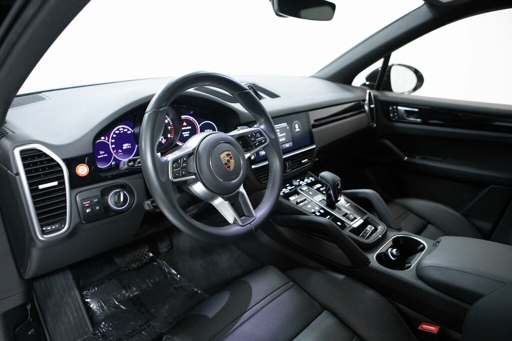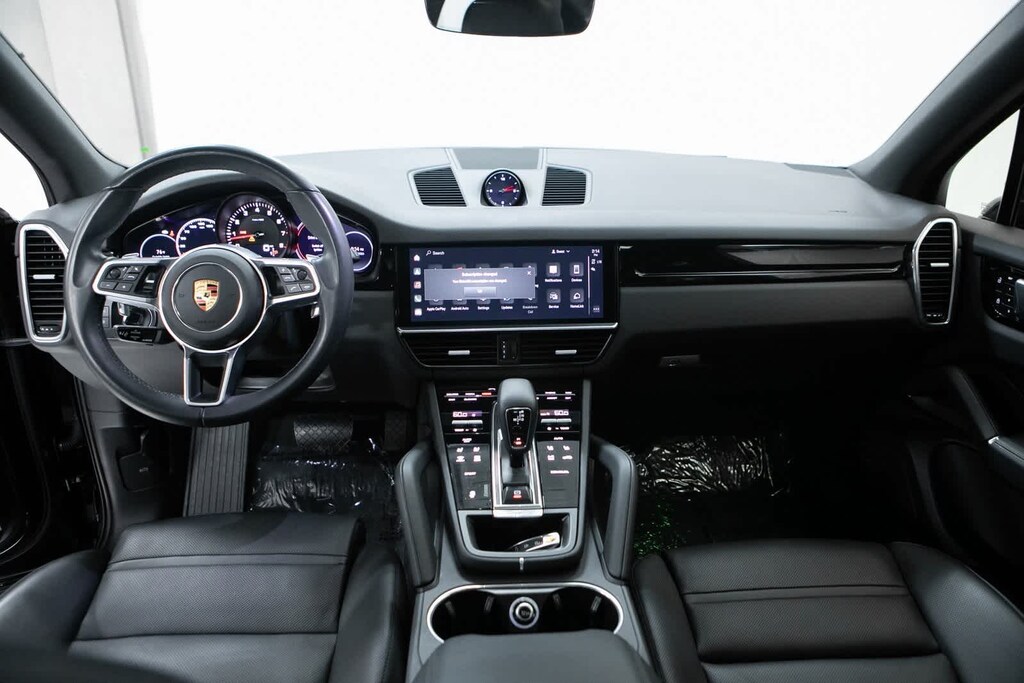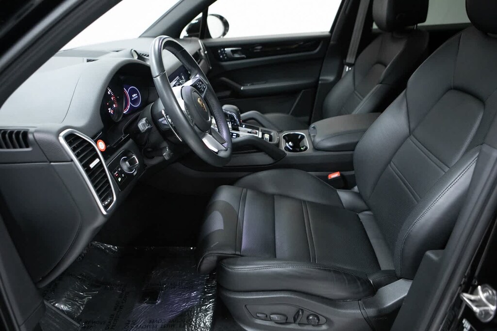 Porsche Certified, Slate Grey w/Partial Leather Seat Trim, 14 Speakers, 14-Way Power Seats w/Comfort Memory, 4-Wheel Disc Brakes, 4-Zone Climate Control, 8-Way Sport Seats, ABS brakes, Adaptive suspension, Air Conditioning, Alloy wheels, AM/FM radio: SiriusXM, Apple CarPlay, Auto-dimming door mirrors, Auto-dimming Rear-View mirror, Automatic temperature control, Axle Ratio: 3.48, Brake assist, Bumpers: body-color, Delay-off headlights, Driver door bin, Driver vanity mirror, Dual front impact airbags, Dual front side impact airbags, Electronic Stability Control, Exterior Parking Camera Rear, Four wheel independent suspension, Front anti-roll bar, Front Bucket Seats, Front Center Armrest, Front dual zone A/C, Front reading lights, Front Seat Ventilation, Fully automatic headlights, Garage door transmitter: HomeLink, Heated door mirrors, Heated Front & Rear Seats, Heated front seats, Illuminated entry, Knee airbag, Lane Change Assist (LCA), Leather Shift Knob, Low tire pressure warning, Navigation System, Occupant sensing airbag, Outside temperature display, Overhead airbag, Overhead console, Panic alarm, Partial Leather Seat Trim, Passenger door bin, Passenger vanity mirror, Porsche Communication Management, Power door mirrors, Power driver seat, Power Liftgate, Power moonroof: Panoramic, Power passenger seat, Power steering, Power windows, Premium Package Plus, Radio data system, Rain sensing wipers, Rear anti-roll bar, Rear fog lights, Rear reading lights, Rear seat center armrest, Rear side impact airbag, Rear window defroster, Rear window wiper, Remote keyless entry, Security system, Speed control, Speed-sensing steering, Split folding rear seat, Spoiler, Steering wheel mounted audio controls, Tachometer, Telescoping steering wheel, Tilt steering wheel, Traction control, Trip computer, Turn signal indicator mirrors, Variably intermittent wipers, Voltmeter, Wheels: 21 RS Spyder Design in Satin Platinum, Slate Grey w/Partial Leather Seat Trim. Odometer is 4329 miles below market average! Black 2023 Porsche Cayenne Platinum Edition Platinum Edition AWD 8-Speed Automatic with Tiptronic 3.0L V6