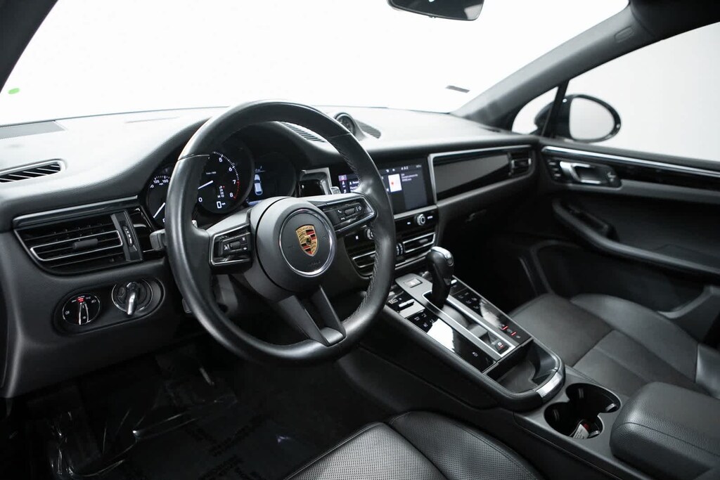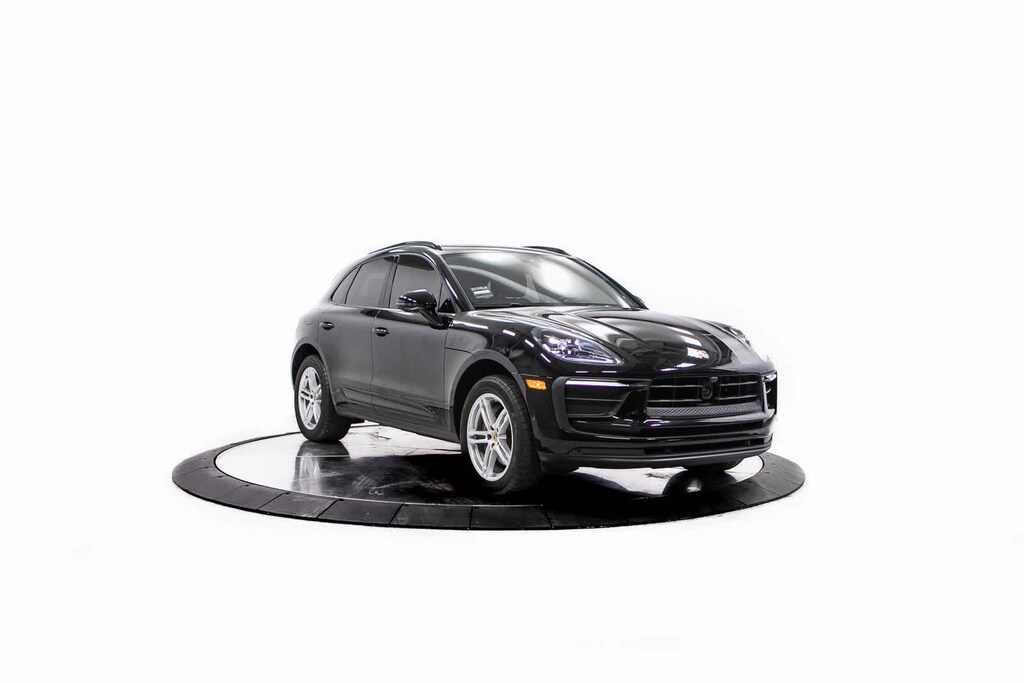 Porsche Certified, 10 Speakers, 4-Wheel Disc Brakes, 4.67 Axle Ratio, 8-Way Power Seats, ABS brakes, Air Conditioning, Alloy wheels, AM/FM radio: SiriusXM, Apple CarPlay & Android Auto, Auto-dimming door mirrors, Auto-dimming Rear-View mirror, Automatic temperature control, Brake assist, Bumpers: body-color, Delay-off headlights, Driver door bin, Driver vanity mirror, Dual front impact airbags, Dual front side impact airbags, Electronic Stability Control, Emergency communication system: Car Connect Services, Exterior Parking Camera Rear, Four wheel independent suspension, Front anti-roll bar, Front Bucket Seats, Front Center Armrest, Front dual zone A/C, Front reading lights, Fully automatic headlights, Garage door transmitter: HomeLink, Heated door mirrors, Heated front seats, Illuminated entry, Leather Shift Knob, Leather steering wheel, Low tire pressure warning, Navigation System, Occupant sensing airbag, Outside temperature display, Overhead airbag, Overhead console, Panic alarm, Partial Leather Seat Trim w/Sport-Tex, Passenger door bin, Passenger vanity mirror, Porsche Communication Management, Power door mirrors, Power driver seat, Power Liftgate, Power passenger seat, Power steering, Power windows, Radio data system, Rain sensing wipers, Rear air conditioning, Rear anti-roll bar, Rear reading lights, Rear seat center armrest, Rear side impact airbag, Rear window defroster, Rear window wiper, Remote keyless entry, Security system, Speed control, Speed-sensing steering, Split folding rear seat, Spoiler, Sport steering wheel, Steering wheel mounted audio controls, Tachometer, Telescoping steering wheel, Tilt steering wheel, Traction control, Trip computer, Turn signal indicator mirrors, Variably intermittent wipers, Wheels: 19 Macan. Odometer is 11738 miles below market average! Black 2023 Porsche Macan Base AWD 7-Speed Porsche Doppelkupplung (PDK) 2.0L I4 Turbocharged