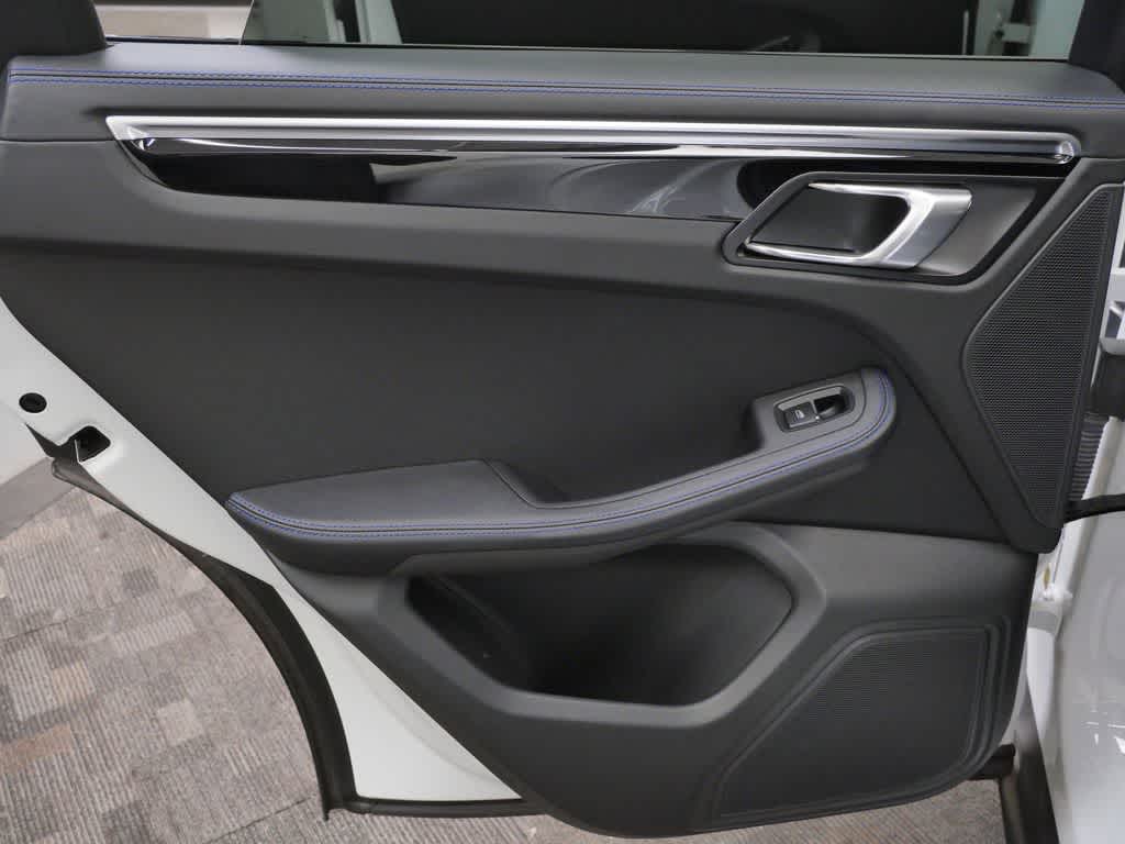 The interior stands out with deviated Gentian Blue stitching, adding a subtle but distinctive performance-inspired detail throughout the cabin. On the exterior, 20 Macan S wheels in High Gloss Black complement the clean white finish, while a factory trailer hitch adds versatility.