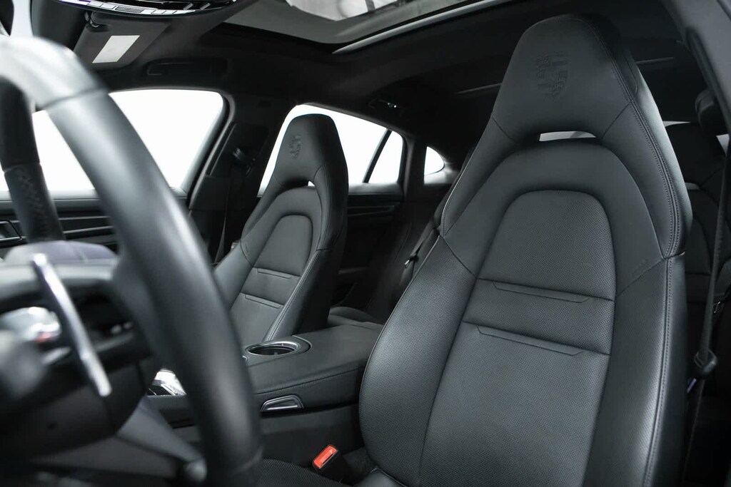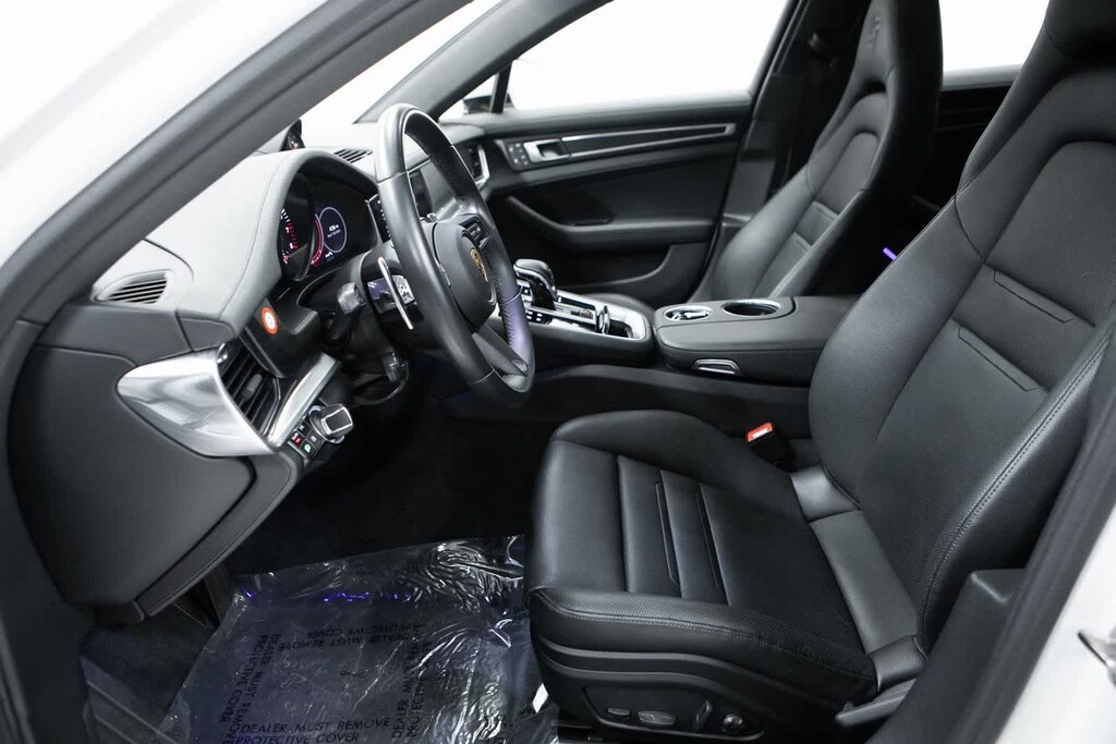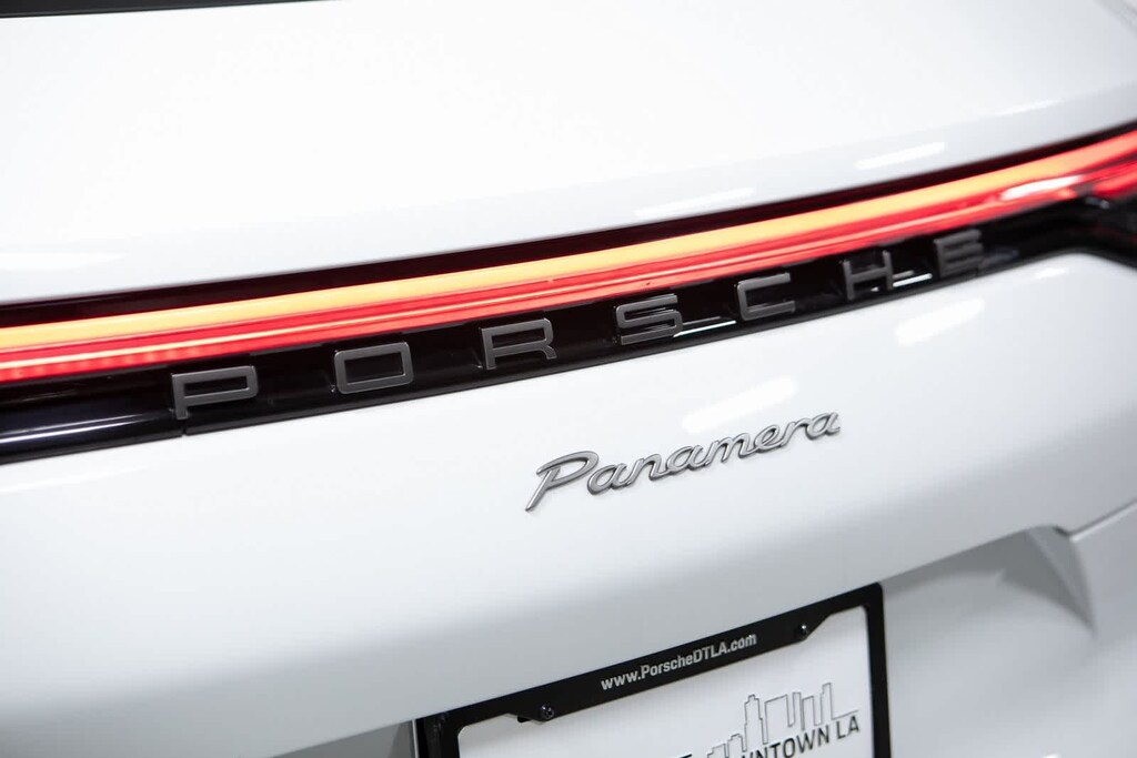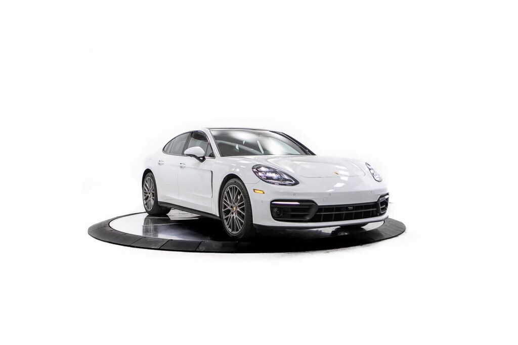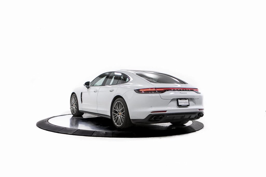 Porsche Certified, 4-Wheel Disc Brakes, ABS brakes, Adaptive suspension, Air Conditioning, Alloy wheels, AM/FM radio: SiriusXM, Apple CarPlay, Auto-dimming door mirrors, Auto-dimming Rear-View mirror, Automatic temperature control, Brake assist, Bumpers: body-color, Compass, Delay-off headlights, Driver door bin, Driver vanity mirror, Dual front impact airbags, Dual front side impact airbags, Electronic Stability Control, Exterior Parking Camera Rear, Four wheel independent suspension, Front anti-roll bar, Front Bucket Seats, Front Center Armrest, Front dual zone A/C, Front reading lights, Fully automatic headlights, Garage door transmitter: HomeLink, Heated door mirrors, Heated front seats, Illuminated entry, Knee airbag, Leather Shift Knob, Leather steering wheel, Low tire pressure warning, Memory seat, Navigation System, Occupant sensing airbag, Outside temperature display, Overhead airbag, Overhead console, Panic alarm, Partial Leather Seat Trim, Passenger door bin, Passenger vanity mirror, Porsche Communication Management, Power door mirrors, Power driver seat, Power Liftgate, Power moonroof, Power passenger seat, Power steering, Power windows, Radio data system, Rain sensing wipers, Rear anti-roll bar, Rear fog lights, Rear reading lights, Rear seat center armrest, Rear side impact airbag, Rear window defroster, Remote keyless entry, Security system, Speed control, Split folding rear seat, Spoiler, Steering wheel mounted audio controls, Tachometer, Telescoping steering wheel, Tilt steering wheel, Traction control, Trip computer, Variably intermittent wipers, Wheels: 19 Panamera. Odometer is 2050 miles below market average! White 2023 Porsche Panamera Platinum Edition Platinum Edition RWD 8-Speed Porsche Doppelkupplung (PDK) V6