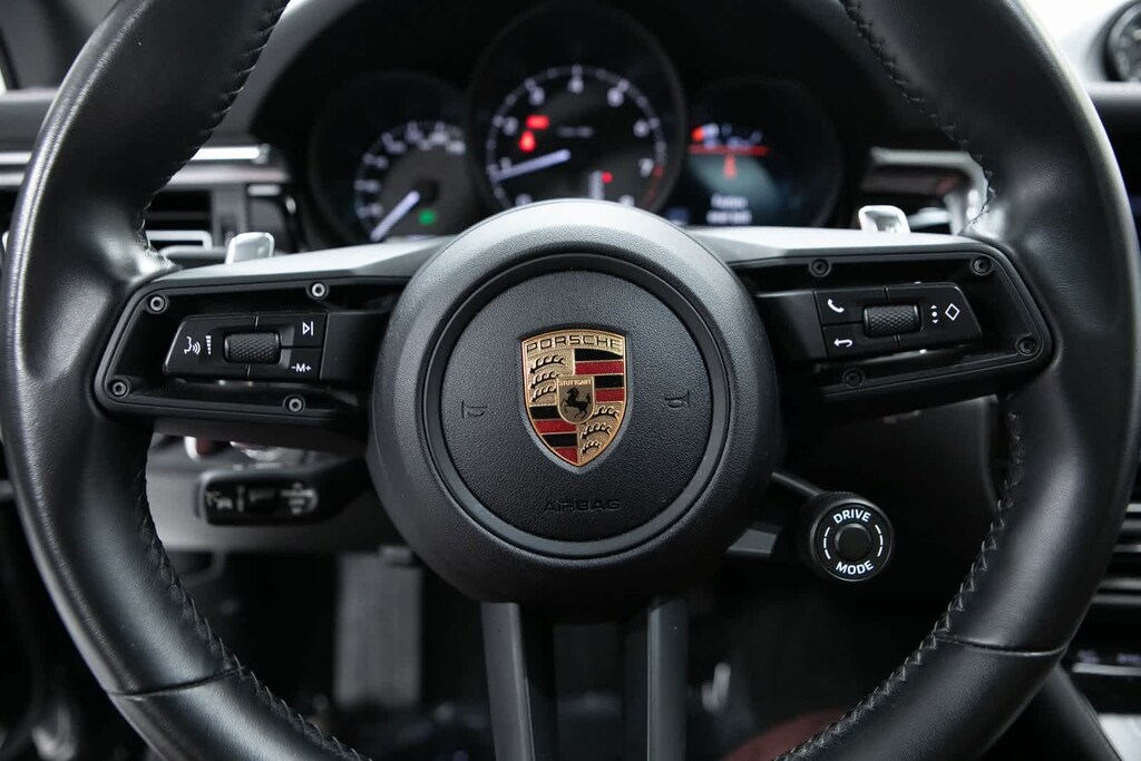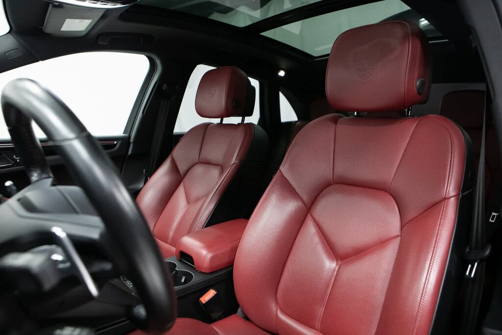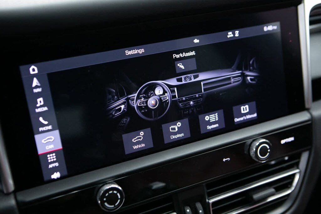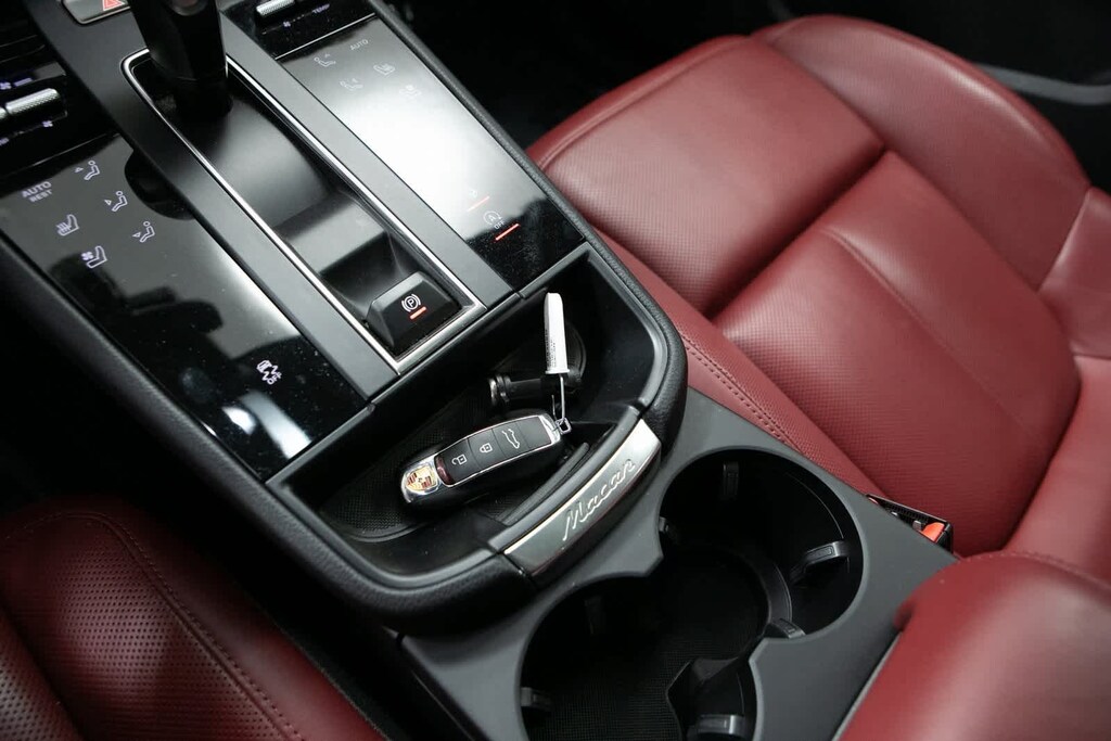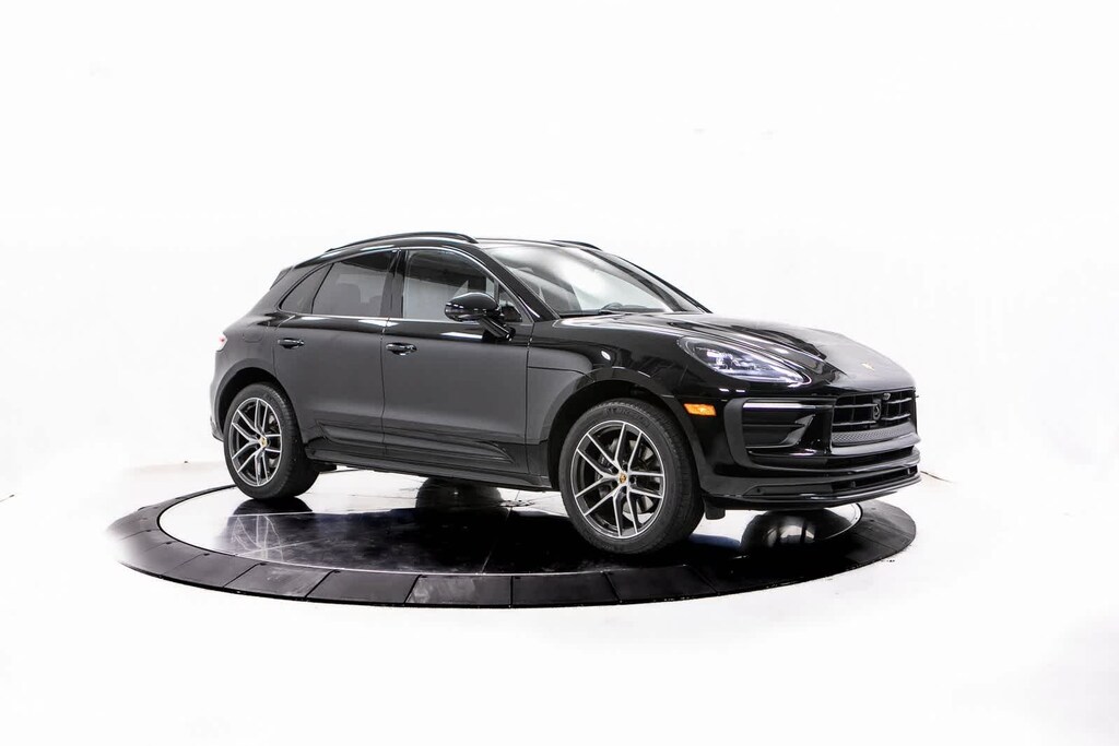 Porsche Certified, 4-Wheel Disc Brakes, 4.67 Axle Ratio, 8 Speakers, ABS brakes, Air Conditioning, Alloy wheels, AM/FM radio: SiriusXM, Apple CarPlay, Auto-dimming door mirrors, Auto-dimming Rear-View mirror, Automatic temperature control, Brake assist, Bumpers: body-color, Delay-off headlights, Driver door bin, Driver vanity mirror, Dual front impact airbags, Dual front side impact airbags, Electronic Stability Control, Emergency communication system: Car Connect Services, Exterior Parking Camera Rear, Four wheel independent suspension, Front anti-roll bar, Front Bucket Seats, Front Center Armrest, Front dual zone A/C, Front reading lights, Fully automatic headlights, Garage door transmitter: HomeLink, Heated 8-Way Power Seats, Heated door mirrors, Heated front seats, Illuminated entry, Leather Shift Knob, Leather steering wheel, Low tire pressure warning, Memory seat, Navigation System, Occupant sensing airbag, Outside temperature display, Overhead airbag, Overhead console, Panic alarm, Passenger door bin, Passenger vanity mirror, Porsche Communication Management, Power door mirrors, Power driver seat, Power Liftgate, Power passenger seat, Power steering, Power windows, Radio data system, Rain sensing wipers, Rear air conditioning, Rear anti-roll bar, Rear reading lights, Rear seat center armrest, Rear side impact airbag, Rear window defroster, Rear window wiper, Remote keyless entry, Security system, Speed control, Speed-sensing steering, Split folding rear seat, Spoiler, Sport steering wheel, Standard Seat Trim, Steering wheel mounted audio controls, Tachometer, Telescoping steering wheel, Tilt steering wheel, Traction control, Trip computer, Turn signal indicator mirrors, Variably intermittent wipers, Wheels: 19 Macan. Black 2024 Porsche Macan Base AWD 7-Speed Porsche Doppelkupplung (PDK) 2.0L I4 Turbocharged
