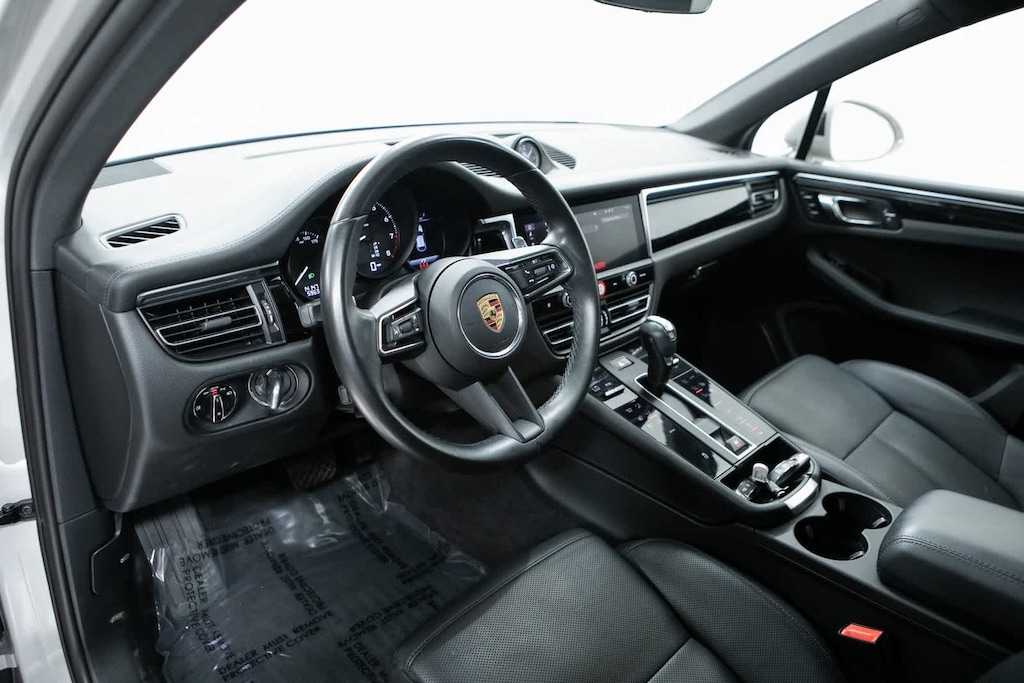 Porsche Certified, 4-Wheel Disc Brakes, 4.67 Axle Ratio, 8 Speakers, ABS brakes, Air Conditioning, Alloy wheels, AM/FM radio: SiriusXM, Apple CarPlay, Auto-dimming door mirrors, Auto-dimming Rear-View mirror, Automatic temperature control, Brake assist, Bumpers: body-color, Delay-off headlights, Driver door bin, Driver vanity mirror, Dual front impact airbags, Dual front side impact airbags, Electronic Stability Control, Emergency communication system: Car Connect Services, Exterior Parking Camera Rear, Four wheel independent suspension, Front anti-roll bar, Front Bucket Seats, Front Center Armrest, Front dual zone A/C, Front reading lights, Fully automatic headlights, Garage door transmitter: HomeLink, Heated 8-Way Power Seats, Heated door mirrors, Heated front seats, Illuminated entry, Leather Shift Knob, Leather steering wheel, Low tire pressure warning, Memory seat, Navigation System, Occupant sensing airbag, Outside temperature display, Overhead airbag, Overhead console, Panic alarm, Passenger door bin, Passenger vanity mirror, Porsche Communication Management, Power door mirrors, Power driver seat, Power Liftgate, Power passenger seat, Power steering, Power windows, Radio data system, Rain sensing wipers, Rear air conditioning, Rear anti-roll bar, Rear reading lights, Rear seat center armrest, Rear side impact airbag, Rear window defroster, Rear window wiper, Remote keyless entry, Security system, Speed control, Speed-sensing steering, Split folding rear seat, Spoiler, Sport steering wheel, Standard Seat Trim, Steering wheel mounted audio controls, Tachometer, Telescoping steering wheel, Tilt steering wheel, Traction control, Trip computer, Turn signal indicator mirrors, Variably intermittent wipers, Wheels: 19 Macan. Chalk 2024 Porsche Macan Base AWD 7-Speed Porsche Doppelkupplung (PDK) 2.0L I4 Turbocharged