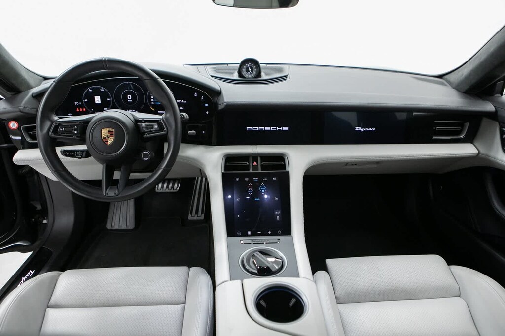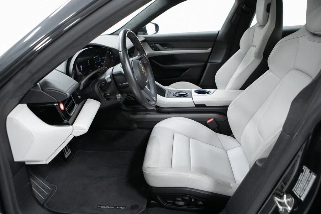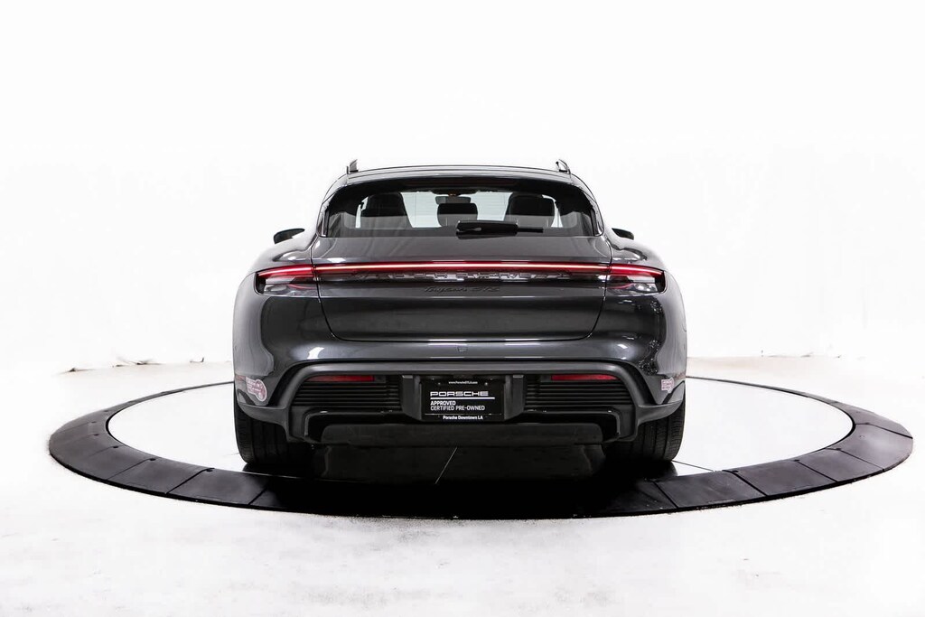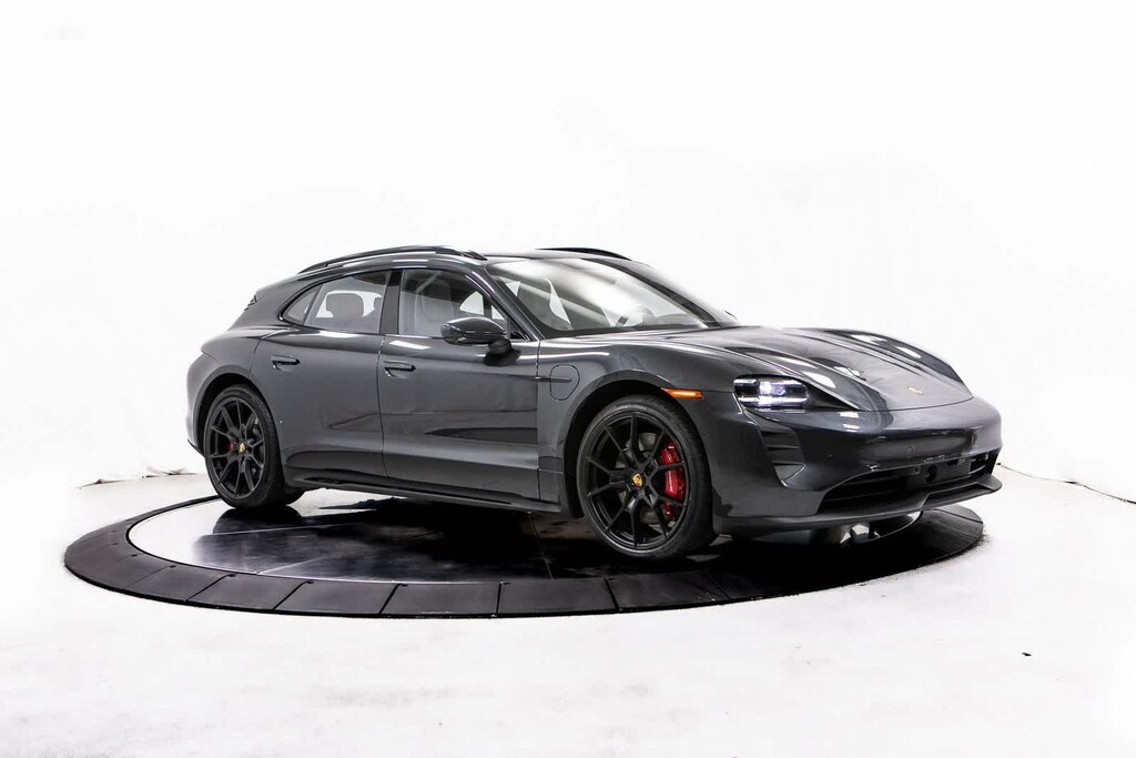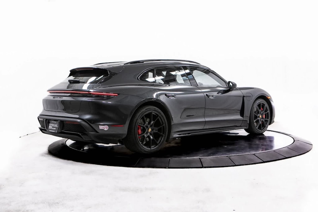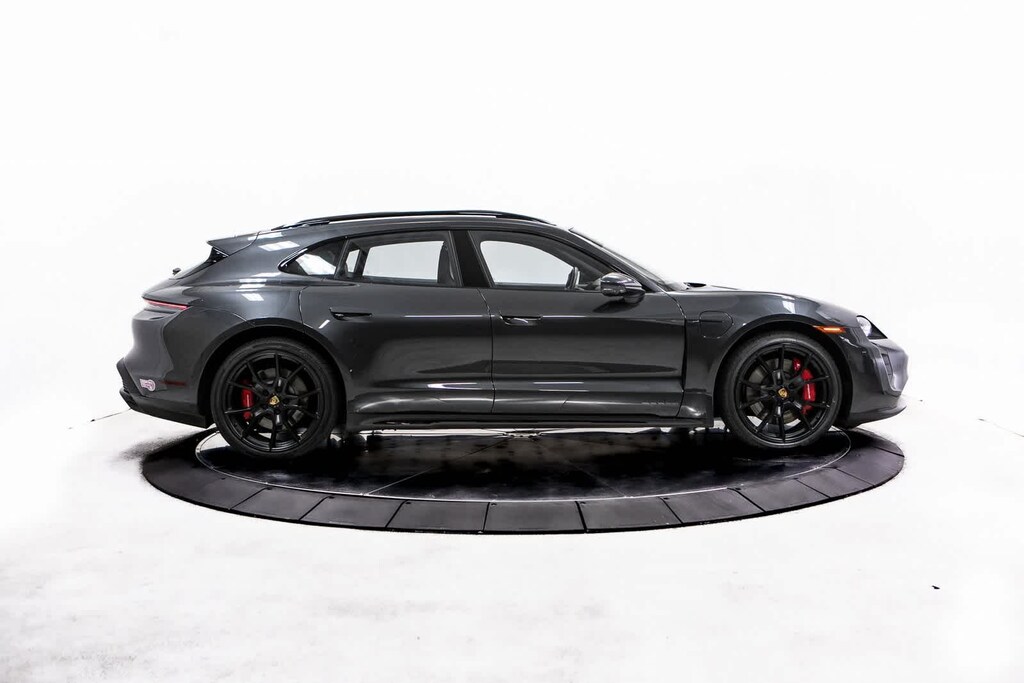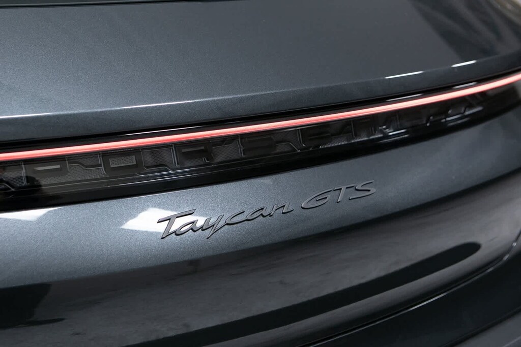 Porsche Certified, 10 Speakers, 18-Way Adaptive Sport Seats Plus w/Comfort Memory, 4-Wheel Disc Brakes, ABS brakes, Adaptive suspension, Air Conditioning, Alloy wheels, Audio memory, Auto High-beam Headlights, Auto tilt-away steering wheel, Auto-dimming door mirrors, Auto-dimming Rear-View mirror, Auto-leveling suspension, Automatic temperature control, Brake assist, Bumpers: body-color, Compass, Delay-off headlights, Driver door bin, Driver vanity mirror, Dual front impact airbags, Dual front side impact airbags, Electronic Stability Control, Exterior Parking Camera Rear, Four wheel independent suspension, Front anti-roll bar, Front Bucket Seats, Front Center Armrest, Front dual zone A/C, Front reading lights, Fully automatic headlights, Garage door transmitter: HomeLink, Heated door mirrors, Heated front seats, Heated steering wheel, HVAC memory, Illuminated entry, Knee airbag, Leather/Race-Tex Seat Trim, Low tire pressure warning, Memory seat, Navigation system: Porsche Communication Management (PCM), Occupant sensing airbag, Outside temperature display, Overhead airbag, Overhead console, Panic alarm, Passenger door bin, Passenger vanity mirror, Porsche Communication Management, Power door mirrors, Power driver seat, Power Liftgate, Power passenger seat, Power steering, Power windows, Radio data system, Rain sensing wipers, Rear anti-roll bar, Rear fog lights, Rear reading lights, Rear seat center armrest, Rear side impact airbag, Rear window defroster, Rear window wiper, Remote keyless entry, Security system, Speed control, Speed-sensing steering, Split folding rear seat, Spoiler, Sport steering wheel, Steering wheel memory, Steering wheel mounted audio controls, Telescoping steering wheel, Tilt steering wheel, Traction control, Trip computer, Variably intermittent wipers, Wheels: 20 Taycan Turbo S Aero Design in Satin Black. Volcano Grey Metallic 2024 Porsche Taycan GTS GTS AWD 2-Speed Automatic Electric Motor