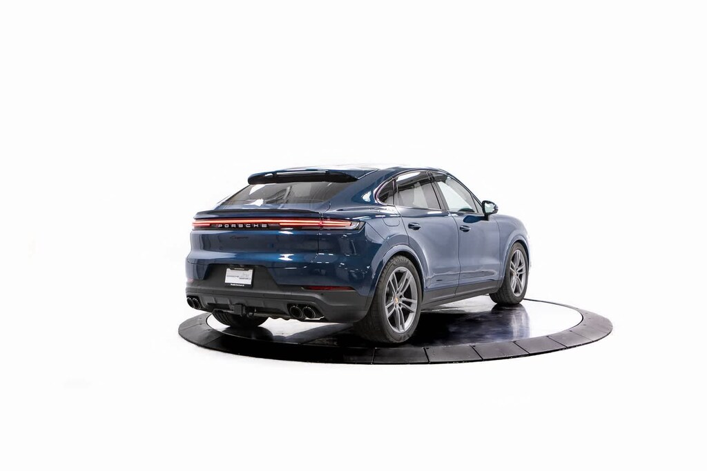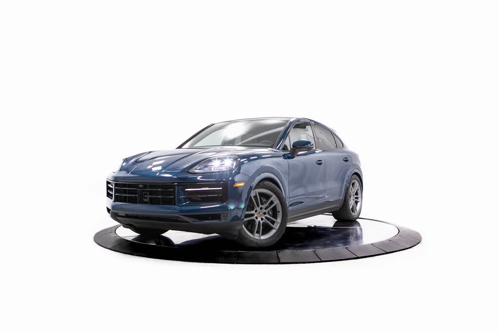 Porsche Certified, 10 Speakers, 4-Wheel Disc Brakes, 8-Way Sport Seats, ABS brakes, Adaptive suspension, Air Conditioning, Alloy wheels, AM/FM radio: SiriusXM w/360L, Apple CarPlay & Android Auto, Audio memory, Auto-dimming door mirrors, Auto-dimming Rear-View mirror, Automatic temperature control, Brake assist, Bumpers: body-color, Compass, Delay-off headlights, Driver door bin, Driver vanity mirror, Dual front impact airbags, Dual front side impact airbags, Electronic Stability Control, Exterior Parking Camera Rear, Four wheel independent suspension, Front anti-roll bar, Front Bucket Seats, Front Center Armrest, Front dual zone A/C, Front reading lights, Fully automatic headlights, Garage door transmitter: HomeLink, Heated door mirrors, Heated front seats, Heated steering wheel, HVAC memory, Illuminated entry, Knee airbag, Leather Seat Trim, Leather steering wheel, Low tire pressure warning, Memory seat, Navigation System, Occupant sensing airbag, Outside temperature display, Overhead airbag, Overhead console, Panic alarm, Passenger door bin, Passenger vanity mirror, Porsche Communication Management, Power door mirrors, Power driver seat, Power Liftgate, Power passenger seat, Power steering, Power windows, Radio data system, Rain sensing wipers, Rear anti-roll bar, Rear fog lights, Rear reading lights, Rear seat center armrest, Rear side impact airbag, Rear window defroster, Remote keyless entry, Security system, Speed control, Speed-sensing steering, Split folding rear seat, Spoiler, Steering wheel mounted audio controls, Tachometer, Telescoping steering wheel, Tilt steering wheel, Traction control, Trip computer, Turn signal indicator mirrors, Variably intermittent wipers, Voltmeter, Wheels: 20 Cayenne Design. Montego Blue Metallic 2025 Porsche Cayenne Coupe Base AWD 8-Speed Automatic with Tiptronic 3.0L V6