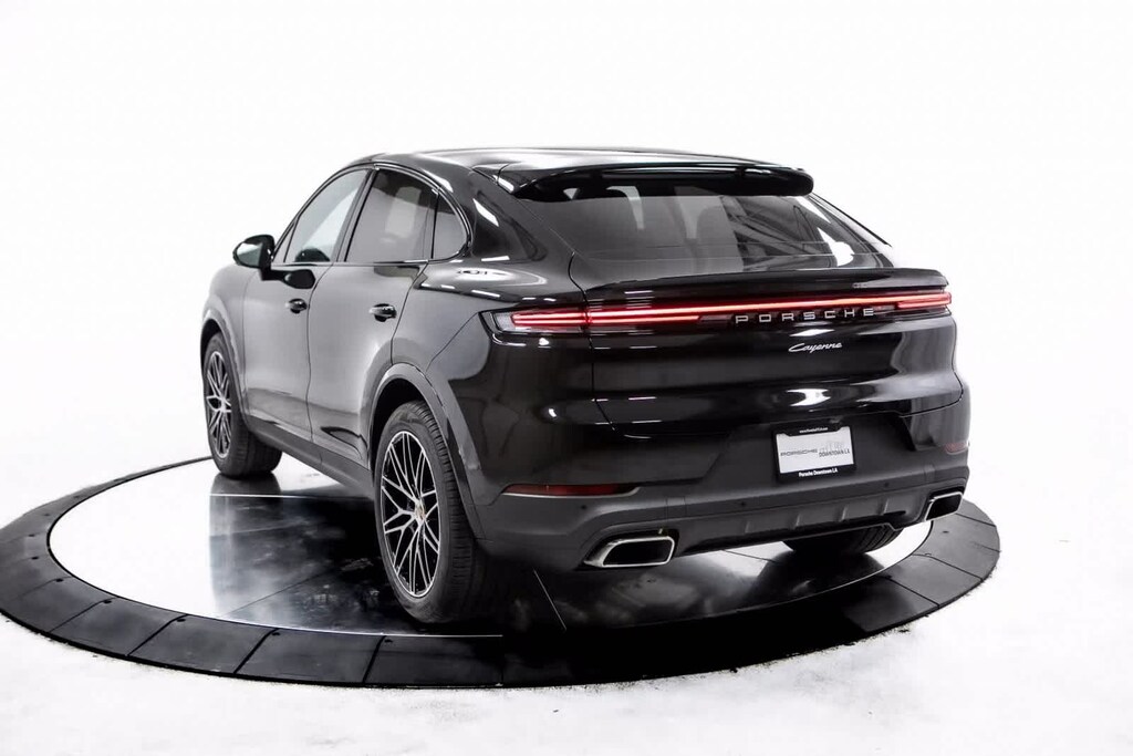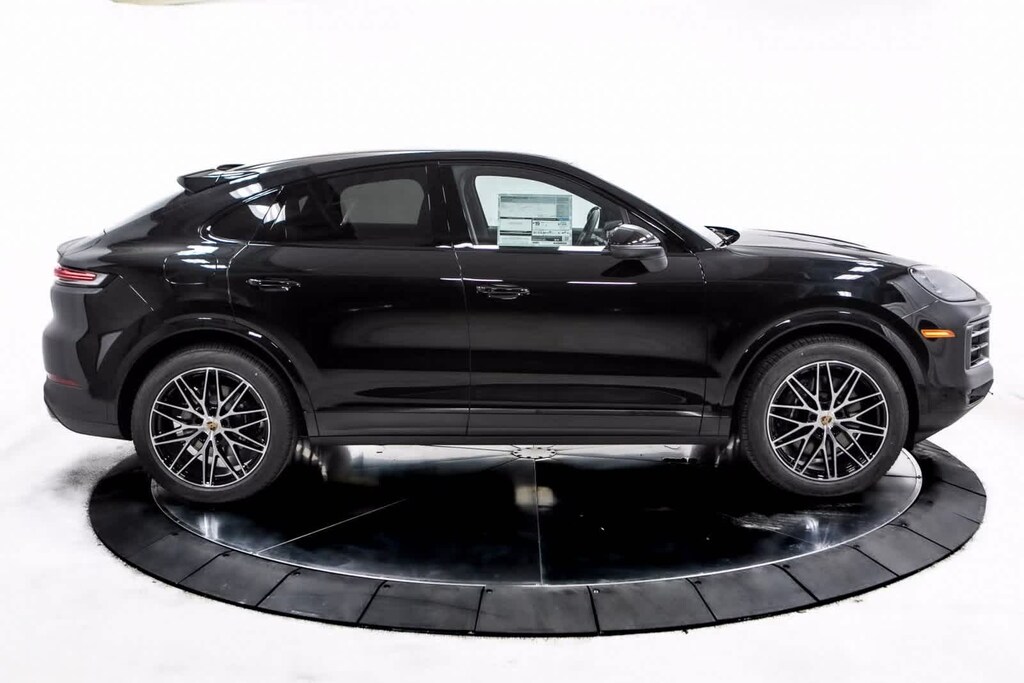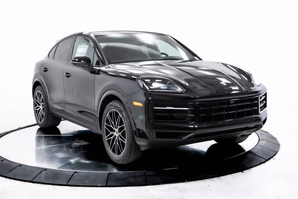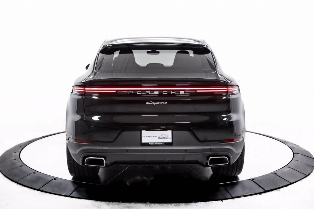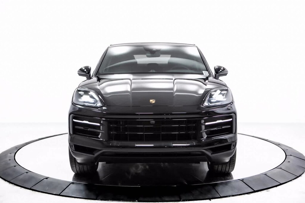 Porsche Certified, 10 Speakers, 4-Wheel Disc Brakes, 8-Way Sport Seats, ABS brakes, Adaptive suspension, Air Conditioning, Alloy wheels, AM/FM radio: SiriusXM w/360L, Apple CarPlay & Android Auto, Audio memory, Auto-dimming door mirrors, Auto-dimming Rear-View mirror, Automatic temperature control, Brake assist, Bumpers: body-color, Compass, Delay-off headlights, Driver door bin, Driver vanity mirror, Dual front impact airbags, Dual front side impact airbags, Electronic Stability Control, Exterior Parking Camera Rear, Four wheel independent suspension, Front anti-roll bar, Front Bucket Seats, Front Center Armrest, Front dual zone A/C, Front reading lights, Fully automatic headlights, Garage door transmitter: HomeLink, Heated door mirrors, Heated front seats, Heated steering wheel, HVAC memory, Illuminated entry, Knee airbag, Leather Seat Trim, Leather steering wheel, Low tire pressure warning, Memory seat, Navigation System, Occupant sensing airbag, Outside temperature display, Overhead airbag, Overhead console, Panic alarm, Passenger door bin, Passenger vanity mirror, Porsche Communication Management, Power door mirrors, Power driver seat, Power Liftgate, Power passenger seat, Power steering, Power windows, Radio data system, Rain sensing wipers, Rear anti-roll bar, Rear fog lights, Rear reading lights, Rear seat center armrest, Rear side impact airbag, Rear window defroster, Remote keyless entry, Security system, Speed control, Speed-sensing steering, Split folding rear seat, Spoiler, Steering wheel mounted audio controls, Tachometer, Telescoping steering wheel, Tilt steering wheel, Traction control, Trip computer, Turn signal indicator mirrors, Variably intermittent wipers, Voltmeter, Wheels: 20 Cayenne Design. Chromite Black Metallic 2025 Porsche Cayenne Coupe Base AWD 8-Speed Automatic with Tiptronic 3.0L V6