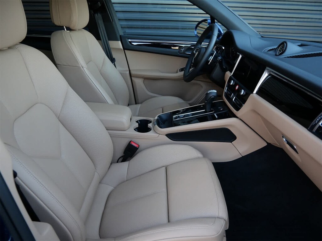 Advanced features include LED Headlights with Porsche Dynamic Light System Plus, Lane Change Assist, and an electric steering column for effortless comfort and control. The roof rails in high gloss black and 19-inch Macan Design wheels add sleek style, while the trailer hitch adds versatility for life on the go.
