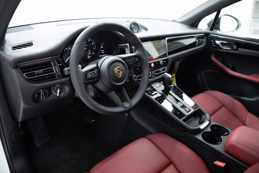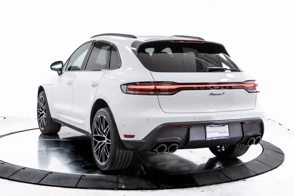 Porsche Certified, 14-Way Power Seats w/Memory Package, 4-Wheel Disc Brakes, 8 Speakers, ABS brakes, Air Conditioning, Alloy wheels, AM/FM radio: SiriusXM, Apple CarPlay, Auto-dimming door mirrors, Auto-dimming Rear-View mirror, Automatic temperature control, BOSE Surround Sound System, Brake assist, Bumpers: body-color, Delay-off headlights, Driver door bin, Driver vanity mirror, Dual front impact airbags, Dual front side impact airbags, Electric Steering Column, Electronic Stability Control, Emergency communication system, Exterior Parking Camera Rear, Four wheel independent suspension, Front anti-roll bar, Front Bucket Seats, Front Center Armrest, Front dual zone A/C, Front reading lights, Front Ventilated Seats, Fully automatic headlights, Garage door transmitter: HomeLink, Heated 8-Way Sport Seats, Heated door mirrors, Heated front seats, Heated steering wheel, Illuminated entry, Lane Change Assist (LCA), Leather Shift Knob, Leather steering wheel, LED Headlights w/Porsche Dynamic Light System Plus, Locking Wheel Bolts, Low tire pressure warning, Macan T Interior Package Seat Trim, Memory seat, Navigation System, Occupant sensing airbag, Outside temperature display, Overhead airbag, Overhead console, Panic alarm, Panoramic Roof System, Passenger door bin, Passenger vanity mirror, Porsche Communication Management, Porsche Crest on Front & Rear Headrests, Power door mirrors, Power driver seat, Power Liftgate, Power passenger seat, Power steering, Power windows, Premium Package Plus, Radio data system, Rain sensing wipers, Rear air conditioning, Rear anti-roll bar, Rear Heated Seats, Rear reading lights, Rear seat center armrest, Rear side impact airbag, Rear window defroster, Rear window wiper, Remote keyless entry, Roof Rails in High Gloss Black, Security system, Self Steering Park Assist, Side Blades in Exterior Color, Speed control, Speed-sensing steering, Split folding rear seat, Spoiler, Sport steering wheel, Steering wheel mounted audio controls, Surround View, Tachometer, Telescoping steering wheel, Tilt steering wheel, Traction control, Trip computer, Turn signal indicator mirrors, Under Door Puddle Light Projectors, Variably intermittent wipers, Wheels: 20 Macan S in Dark Titanium, Wheels: 21 RS Spyder Design. White 2025 Porsche Macan T T AWD 7-Speed Porsche Doppelkupplung (PDK) 2.0L I4 Turbocharged