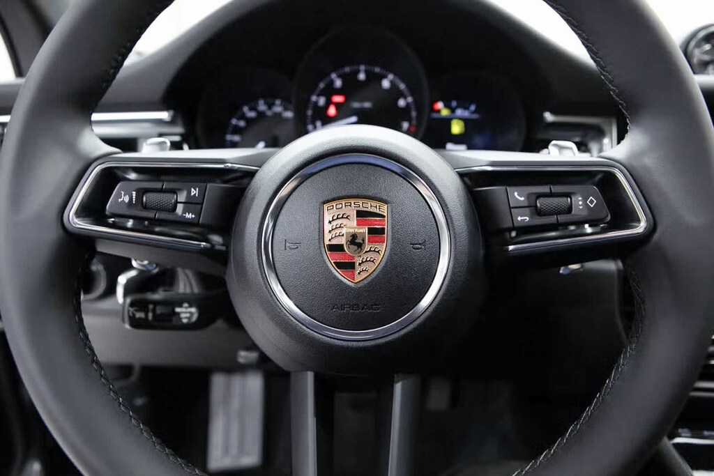 Porsche Certified, 4-Wheel Disc Brakes, 8 Speakers, 8-Way Heated Front Comfort Seats, ABS brakes, Air Conditioning, Alloy wheels, AM/FM radio: SiriusXM, Apple CarPlay, Auto-dimming door mirrors, Auto-dimming Rear-View mirror, Automatic temperature control, Brake assist, Bumpers: body-color, Delay-off headlights, Driver door bin, Driver vanity mirror, Dual front impact airbags, Dual front side impact airbags, Electronic Stability Control, Emergency communication system, Exterior Parking Camera Rear, Four wheel independent suspension, Front anti-roll bar, Front Bucket Seats, Front Center Armrest, Front dual zone A/C, Front reading lights, Fully automatic headlights, Garage door transmitter: HomeLink, Heated door mirrors, Heated front seats, Illuminated entry, Leather Shift Knob, Leather steering wheel, Low tire pressure warning, Memory seat, Navigation System, Occupant sensing airbag, Outside temperature display, Overhead airbag, Overhead console, Panic alarm, Passenger door bin, Passenger vanity mirror, Porsche Communication Management, Power door mirrors, Power driver seat, Power Liftgate, Power passenger seat, Power steering, Power windows, Radio data system, Rain sensing wipers, Rear air conditioning, Rear anti-roll bar, Rear reading lights, Rear seat center armrest, Rear side impact airbag, Rear window defroster, Rear window wiper, Remote keyless entry, Security system, Speed control, Speed-sensing steering, Split folding rear seat, Spoiler, Sport steering wheel, Standard Seat Trim, Steering wheel mounted audio controls, Tachometer, Telescoping steering wheel, Tilt steering wheel, Traction control, Trip computer, Turn signal indicator mirrors, Variably intermittent wipers, Wheels: 19 Macan. Odometer is 3333 miles below market average! Black 2025 Porsche Macan Base AWD 7-Speed Porsche Doppelkupplung (PDK) 2.0L I4 Turbocharged