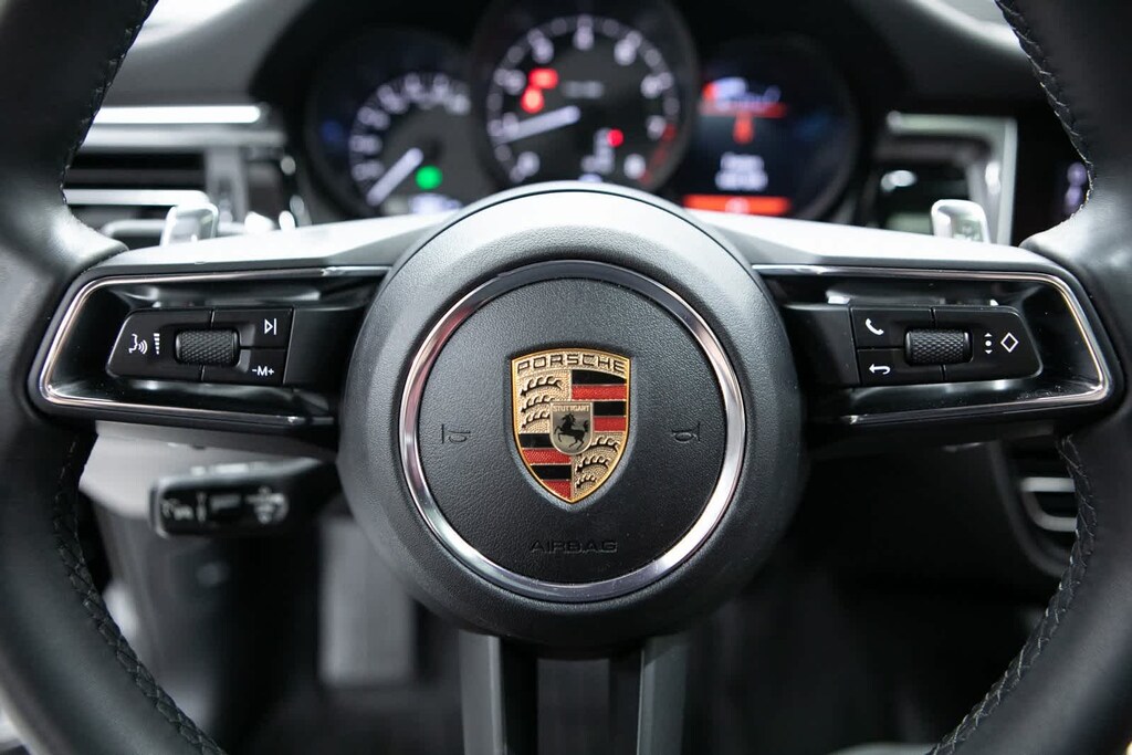 Porsche Certified, 4-Wheel Disc Brakes, 8 Speakers, 8-Way Heated Front Comfort Seats, ABS brakes, Air Conditioning, Alloy wheels, AM/FM radio: SiriusXM, Apple CarPlay, Auto-dimming door mirrors, Auto-dimming Rear-View mirror, Automatic temperature control, Brake assist, Bumpers: body-color, Delay-off headlights, Driver door bin, Driver vanity mirror, Dual front impact airbags, Dual front side impact airbags, Electronic Stability Control, Emergency communication system, Exterior Parking Camera Rear, Four wheel independent suspension, Front anti-roll bar, Front Bucket Seats, Front Center Armrest, Front dual zone A/C, Front reading lights, Fully automatic headlights, Garage door transmitter: HomeLink, Heated door mirrors, Heated front seats, Illuminated entry, Leather Shift Knob, Leather steering wheel, Low tire pressure warning, Memory seat, Navigation System, Occupant sensing airbag, Outside temperature display, Overhead airbag, Overhead console, Panic alarm, Passenger door bin, Passenger vanity mirror, Porsche Communication Management, Power door mirrors, Power driver seat, Power Liftgate, Power passenger seat, Power steering, Power windows, Radio data system, Rain sensing wipers, Rear air conditioning, Rear anti-roll bar, Rear reading lights, Rear seat center armrest, Rear side impact airbag, Rear window defroster, Rear window wiper, Remote keyless entry, Security system, Speed control, Speed-sensing steering, Split folding rear seat, Spoiler, Sport steering wheel, Standard Seat Trim, Steering wheel mounted audio controls, Tachometer, Telescoping steering wheel, Tilt steering wheel, Traction control, Trip computer, Turn signal indicator mirrors, Variably intermittent wipers, Wheels: 19 Macan. Odometer is 2503 miles below market average! Black 2025 Porsche Macan Base AWD 7-Speed Porsche Doppelkupplung (PDK) 2.0L I4 Turbocharged