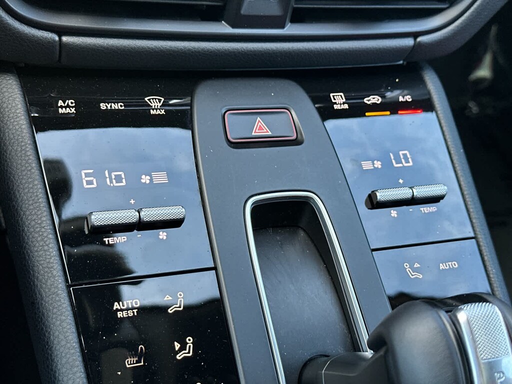 Inside, the cabin is meticulously crafted to deliver comfort and sophistication in equal measure. 14-Way Power Seats with Memory Package provide exceptional adjustability, while front ventilated seats, rear heated seats, and a heated steering wheel ensure year-round comfort. The driver-focused cockpit is enhanced by a power-adjustable electric steering column, automatic dual-zone climate control, and subtle premium accents such as brushed aluminum door sill guards and Porsche crests embossed on the front headrests.