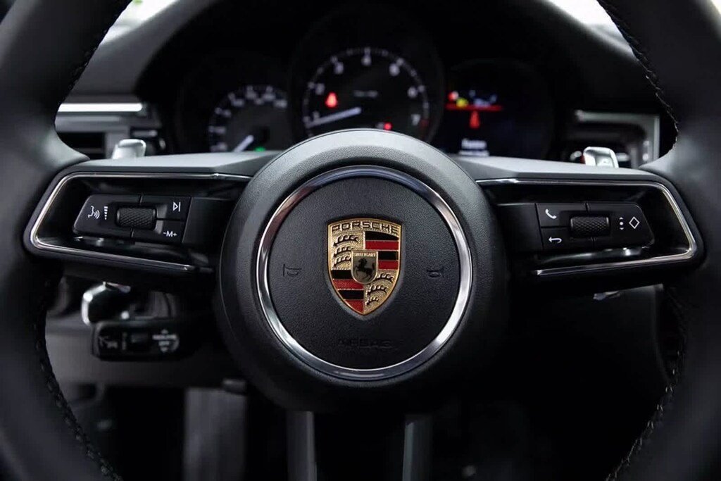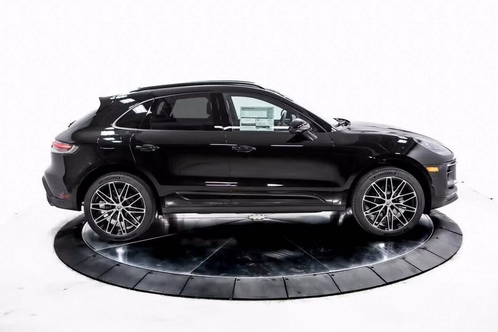 Porsche Certified, 14-Way Power Seats w/Memory Package, 4-Wheel Disc Brakes, 8 Speakers, 8-Way Heated Front Comfort Seats, ABS brakes, Air Conditioning, Alloy wheels, AM/FM radio: SiriusXM, Apple CarPlay, Auto-dimming door mirrors, Auto-dimming Rear-View mirror, Automatic temperature control, Brake assist, Bumpers: body-color, Delay-off headlights, Driver door bin, Driver vanity mirror, Dual front impact airbags, Dual front side impact airbags, Electronic Stability Control, Emergency communication system, Exterior Parking Camera Rear, Four wheel independent suspension, Front anti-roll bar, Front Bucket Seats, Front Center Armrest, Front dual zone A/C, Front reading lights, Front Ventilated Seats, Fully automatic headlights, Garage door transmitter: HomeLink, Heated door mirrors, Heated front seats, Illuminated entry, Lane Change Assist (LCA), Leather Shift Knob, Leather steering wheel, LED Headlights w/Porsche Dynamic Light System Plus, Low tire pressure warning, Memory seat, Navigation System, Occupant sensing airbag, Outside temperature display, Overhead airbag, Overhead console, Panic alarm, Panoramic Roof System, Passenger door bin, Passenger vanity mirror, Porsche Communication Management, Power door mirrors, Power driver seat, Power Liftgate, Power passenger seat, Power steering, Power windows, Premium Package Plus, Radio data system, Rain sensing wipers, Rear air conditioning, Rear anti-roll bar, Rear Heated Seats, Rear reading lights, Rear seat center armrest, Rear side impact airbag, Rear window defroster, Rear window wiper, Remote keyless entry, Security system, Speed control, Speed-sensing steering, Split folding rear seat, Spoiler, Sport steering wheel, Standard Seat Trim, Steering wheel mounted audio controls, Tachometer, Telescoping steering wheel, Tilt steering wheel, Traction control, Trip computer, Turn signal indicator mirrors, Variably intermittent wipers, Wheels: 19 Macan. Odometer is 3508 miles below market average! Black 2025 Porsche Macan Base AWD 7-Speed Porsche Doppelkupplung (PDK) 2.0L I4 Turbocharged