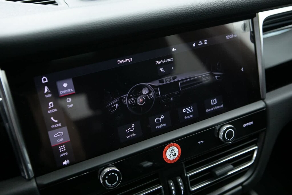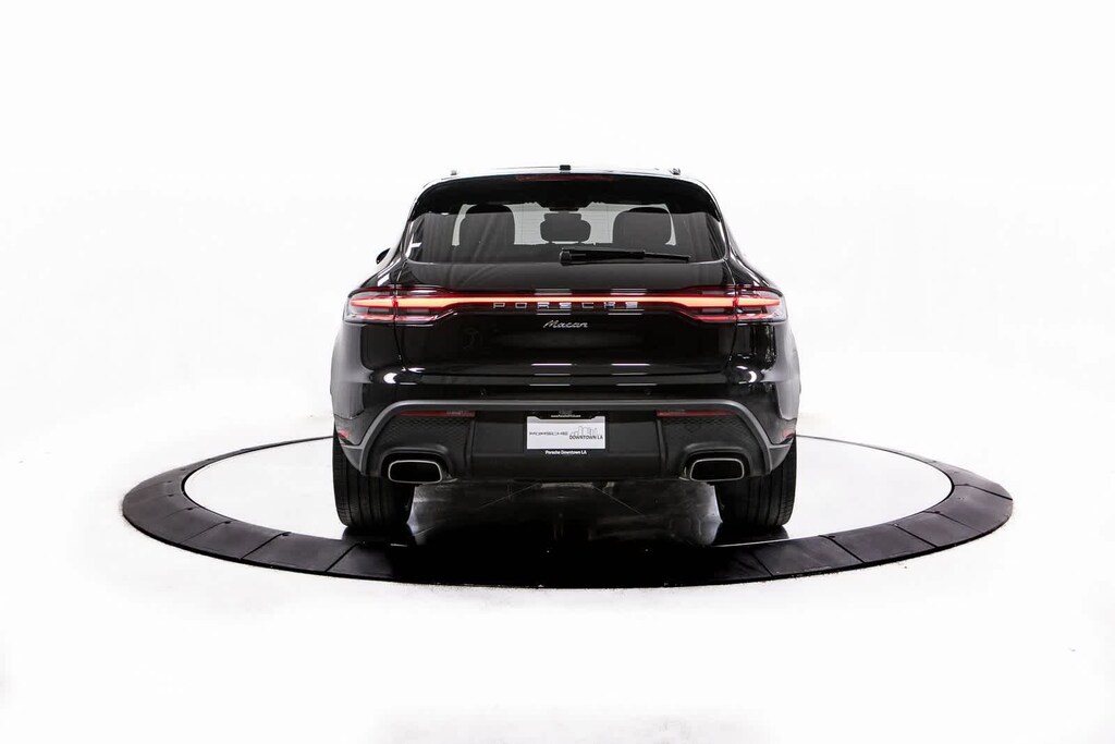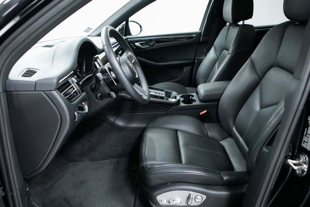 Porsche Certified, 14-Way Power Seats w/Memory Package, 4-Wheel Disc Brakes, 8 Speakers, 8-Way Heated Front Comfort Seats, ABS brakes, Air Conditioning, Alloy wheels, AM/FM radio: SiriusXM, Apple CarPlay, Auto-dimming door mirrors, Auto-dimming Rear-View mirror, Automatic temperature control, BOSE Surround Sound System, Brake assist, Bumpers: body-color, Delay-off headlights, Driver door bin, Driver vanity mirror, Dual front impact airbags, Dual front side impact airbags, Electric Steering Column, Electronic Stability Control, Emergency communication system, Exterior Parking Camera Rear, Four wheel independent suspension, Front anti-roll bar, Front Bucket Seats, Front Center Armrest, Front dual zone A/C, Front reading lights, Front Ventilated Seats, Fully automatic headlights, Garage door transmitter: HomeLink, Heated door mirrors, Heated front seats, Heated Steering Wheel, Illuminated entry, Lane Change Assist (LCA), Leather Shift Knob, Leather steering wheel, LED Headlights w/Porsche Dynamic Light System Plus, Low tire pressure warning, Memory seat, Navigation System, Occupant sensing airbag, Outside temperature display, Overhead airbag, Overhead console, Panic alarm, Panoramic Roof System, Passenger door bin, Passenger vanity mirror, Porsche Communication Management, Porsche Crest on Front Headrests, Power door mirrors, Power driver seat, Power Liftgate, Power passenger seat, Power steering, Power windows, Premium Package Plus, Radio data system, Rain sensing wipers, Rear air conditioning, Rear anti-roll bar, Rear Heated Seats, Rear reading lights, Rear seat center armrest, Rear side impact airbag, Rear window defroster, Rear window wiper, Remote keyless entry, Roof Rails in High Gloss Black, Security system, Speed control, Speed-sensing steering, Split folding rear seat, Spoiler, Sport steering wheel, Standard Seat Trim, Steering wheel mounted audio controls, Surround View, Tachometer, Telescoping steering wheel, Tilt steering wheel, Traction control, Trip computer, Turn signal indicator mirrors, Variably intermittent wipers, Wheel Center Caps w/Colored Porsche Crest, Wheels: 19 Macan, Wheels: 21 RS Spyder Design. Black 2025 Porsche Macan Base AWD 7-Speed Porsche Doppelkupplung (PDK) 2.0L I4 Turbocharged