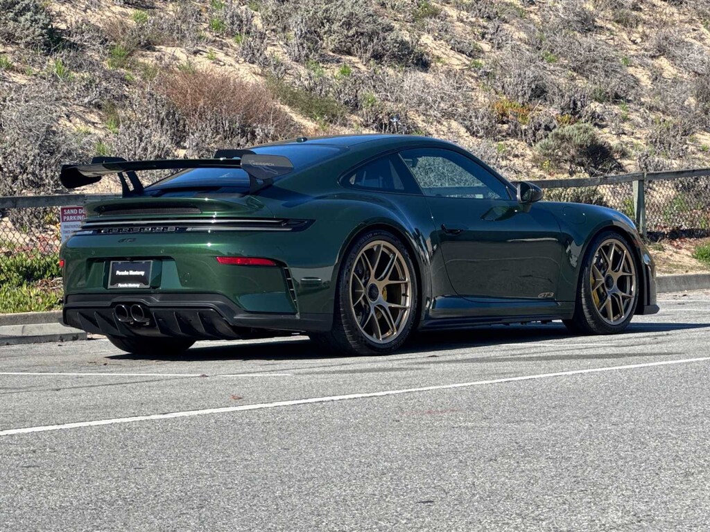 Many drivers from Monterey know us as their neighbors. Others know us for the integrity of our pre-owned car collection, Porsche parts, service and repairs. In short, Porsche Monterey is a comprehensive Porsche and pre-owned car center. Anything you could want that relates to either new Porsche models or CPO cars - from a simple answer to a repair - you can find here, under one roof. Thats our story. We hope to have the opportunity to learn yours soon. Imagine owning a 2026 Porsche 911 GT3 that makes every drive feel like a declaration not just of speed, but of taste, intent, and pure driving joy.Why this GT3 is special and why you should buy it: - Mechanical soul, human connection: The six-speed GT Sport manual is a rare, intentional link between driver and machine. Every shift is precise, rewarding, alive you dont pilot this car, you participate in it.- Weissach pedigree: The Weissach Package is pure engineering theater extreme weight savings, carbon fiber artistry, and track-focused tuning that sharpen response and make the car feel telepathic in corners.- Lightweight, race-born kit: Forged magnesium 20/21 wheels, folding lightweight bucket seats, carbon fiber floor mats and bespoke matte-carbon door-sills cut unsprung mass and lower inertia so the GT3 changes direction on command.- Braking and grip that inspire confidence: Porsche Ceramic Composite Brakes with bright yellow calipers deliver repeatable, fade-free stopping power so you can push harder and recover faster.- Aesthetic understatement with purposeful flair: Oak Green Metallic Neo with GT Silver stitching, California Gold door designation and Weissach accents this is a car that looks composed in traffic and lethal on a track.- Driver-focused cockpit: Race-Tex, GT Silver detailing, aluminum pedals, Race-Tex seat-belt outlets and a Porsche Design GT clock make the interior both functional and emotionally satisfying everything you touch communicates precision.- Practical performance: Front axle lift, extended fuel tank, ambient lighting, ParkAssist, dashcam prep and BOSE surround sound mean this car is at home on both road trips and racetracks.- Exclusivity that matters: Personalized painted keys, exclusive taillights, illuminated matte-carbon sill guards and unique trim options make this GT3 feel bespoke like it was made for you.- The emotional payoff: Its the rare modern supercar that asks for participation and rewards presence. It turns mundane routes into memorable drives, transforms corners into conversations, and makes you feel sharper, more focused, alive.Buy it because its not just the fastest or most exotic option its the most honest. It hands you control, asks for skill, and repays you with pure, unfiltered driving exhilaration. If you want a car that makes you a better driver while delivering goosebump moments every time you start it, this 2026 911 GT3 is the one.