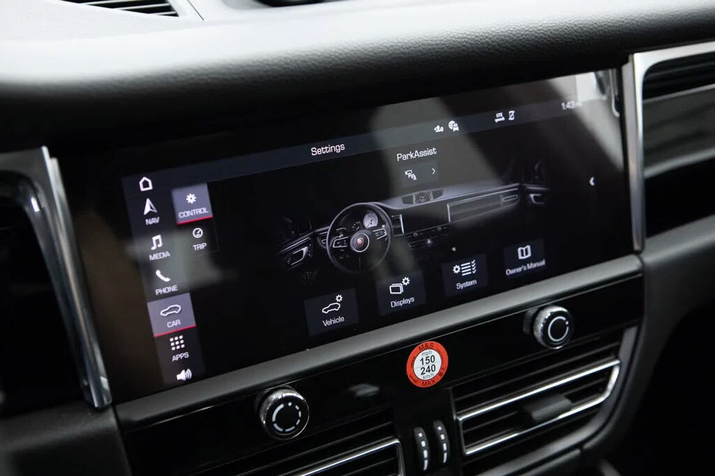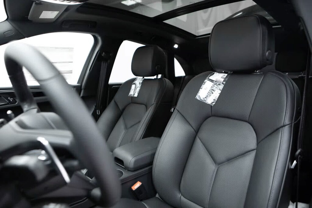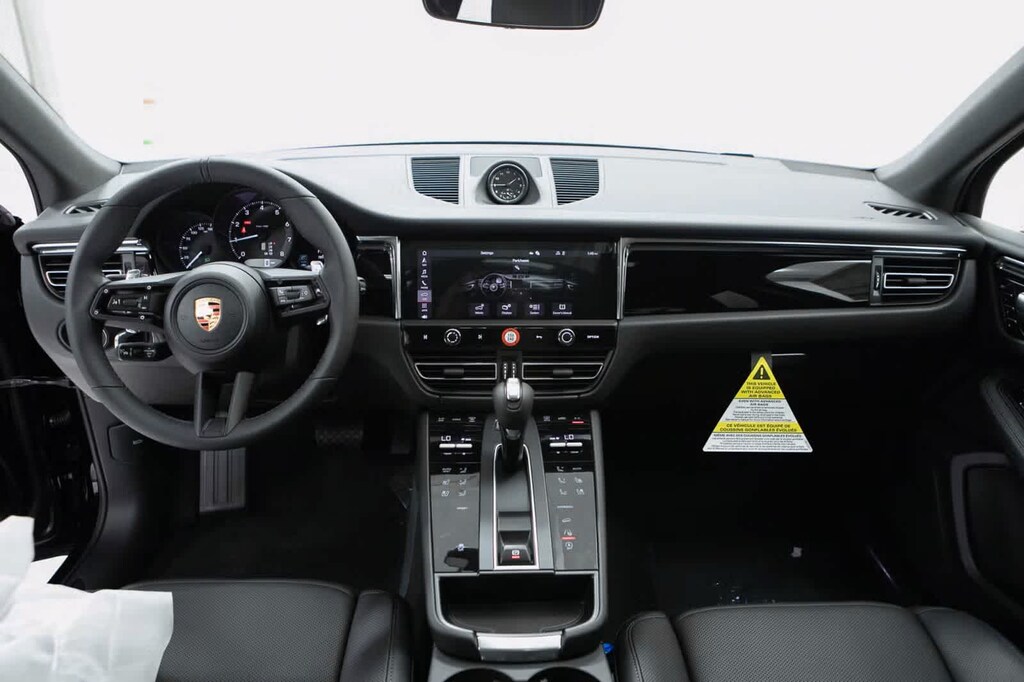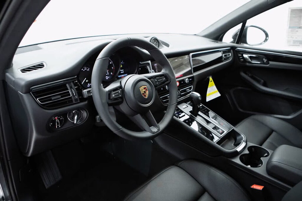 Porsche Certified, 4-Wheel Disc Brakes, 8 Speakers, 8-Way Front Comfort Seats, ABS brakes, Air Conditioning, Alloy wheels, AM/FM radio: SiriusXM, Apple CarPlay, Auto-dimming door mirrors, Auto-dimming Rear-View mirror, Automatic temperature control, Brake assist, Bumpers: body-color, Delay-off headlights, Driver door bin, Driver vanity mirror, Dual front impact airbags, Dual front side impact airbags, Electronic Stability Control, Emergency communication system, Exterior Parking Camera Rear, Four wheel independent suspension, Front anti-roll bar, Front Bucket Seats, Front Center Armrest, Front dual zone A/C, Front reading lights, Fully automatic headlights, Garage door transmitter: HomeLink, Heated door mirrors, Heated front seats, Illuminated entry, Leather Shift Knob, Leather steering wheel, Low tire pressure warning, Memory seat, Navigation System, Occupant sensing airbag, Outside temperature display, Overhead airbag, Overhead console, Panic alarm, Passenger door bin, Passenger vanity mirror, Porsche Communication Management, Power door mirrors, Power driver seat, Power Liftgate, Power passenger seat, Power steering, Power windows, Radio data system, Rain sensing wipers, Rear air conditioning, Rear anti-roll bar, Rear reading lights, Rear seat center armrest, Rear side impact airbag, Rear window defroster, Rear window wiper, Remote keyless entry, Security system, Sound Package Plus, Speed control, Speed-sensing steering, Split folding rear seat, Spoiler, Sport steering wheel, Standard Seat Trim, Steering wheel mounted audio controls, Tachometer, Telescoping steering wheel, Tilt steering wheel, Traction control, Trip computer, Turn signal indicator mirrors, Variably intermittent wipers, Wheels: 19 Macan. Black 2026 Porsche Macan Base AWD 7-Speed Porsche Doppelkupplung (PDK) 2.0L Turbocharged